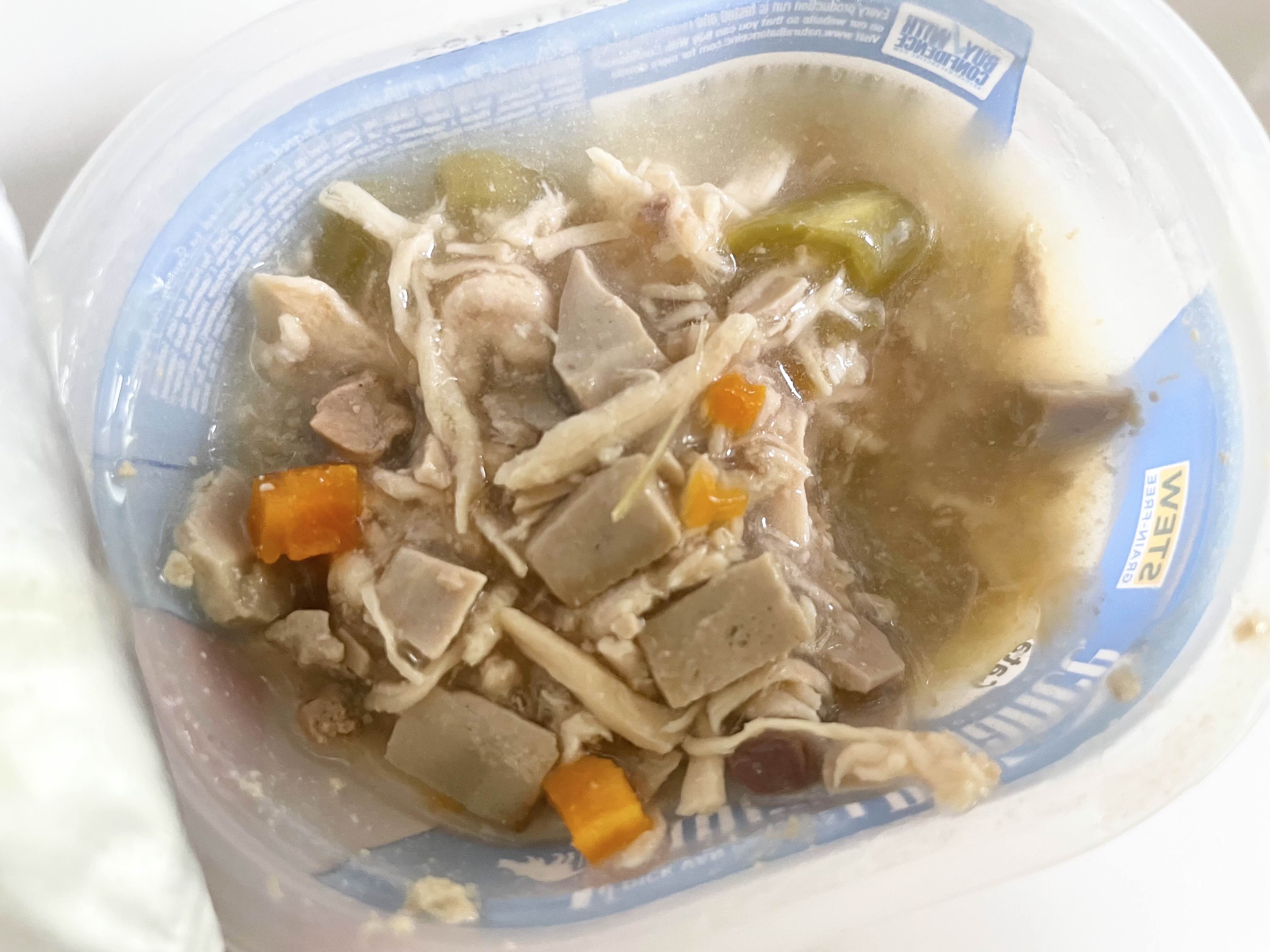 노란색은 차타투이 닭고기+닭간 스튜입니다.