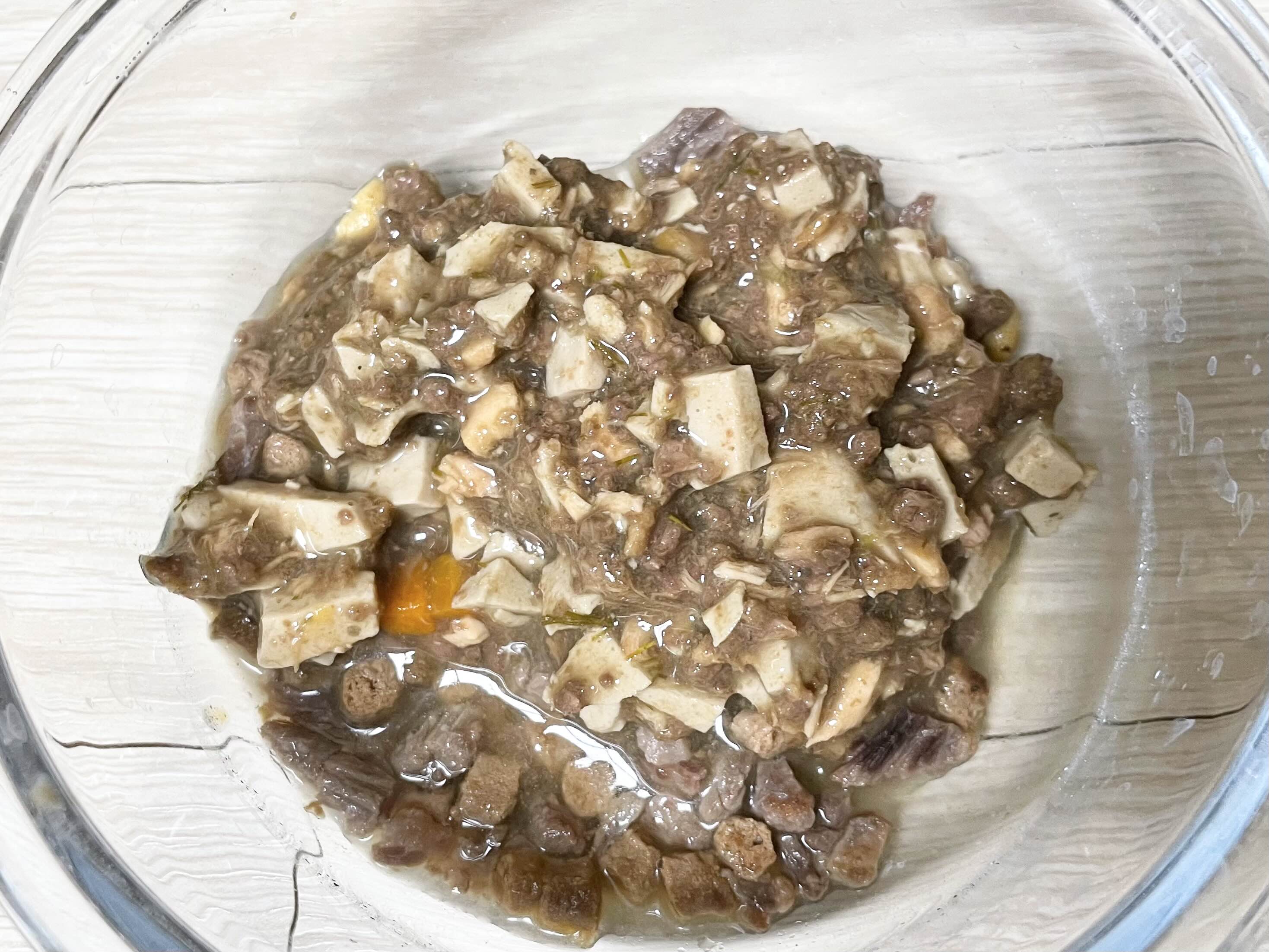 파랑색은 시브룰레 참치+흰살생선+당근 혼합 스튜입니다.