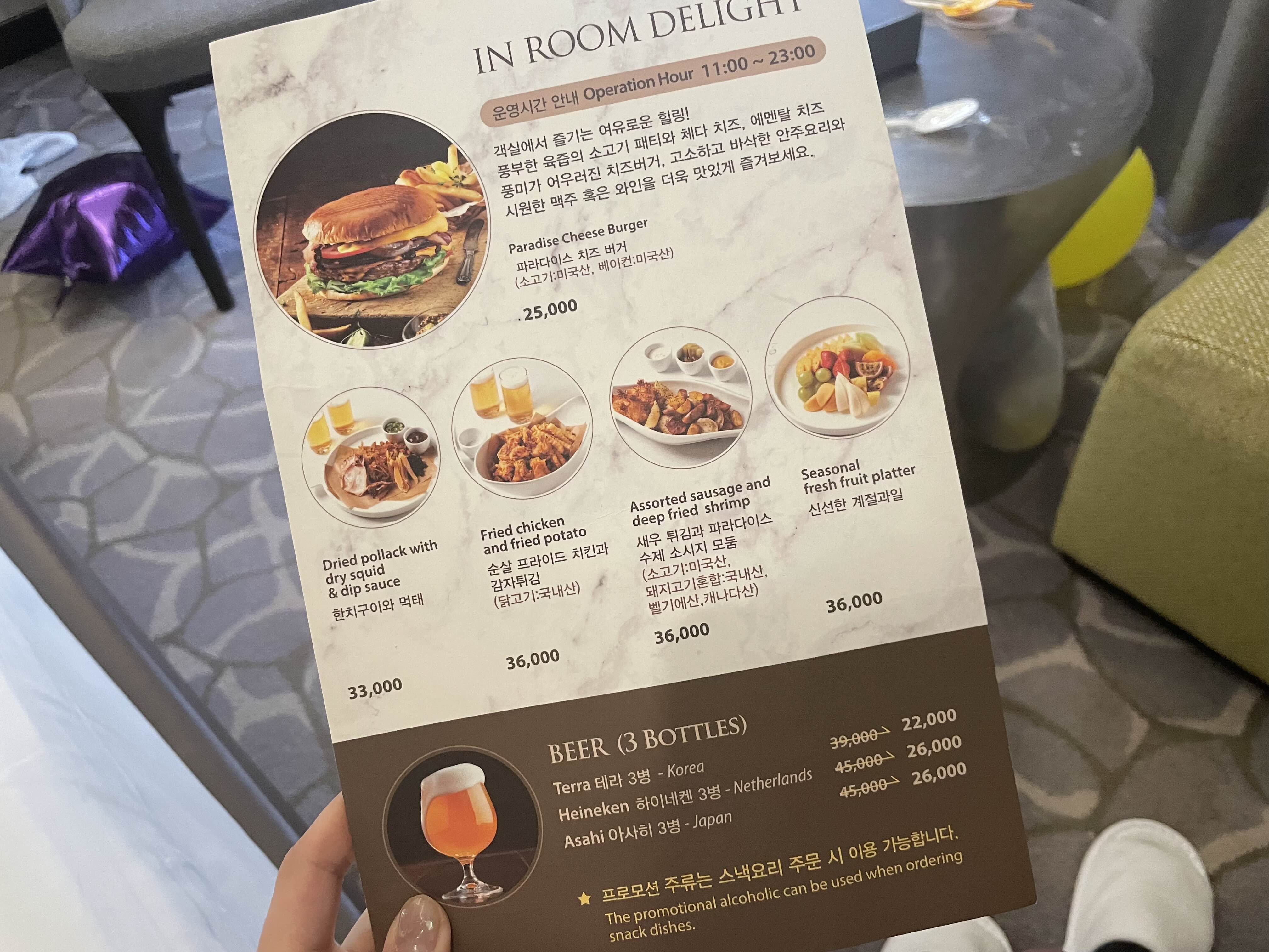 (스크롤바 내리시면 안주말고 룸서비스 식사메뉴도 나와있습니다^^)