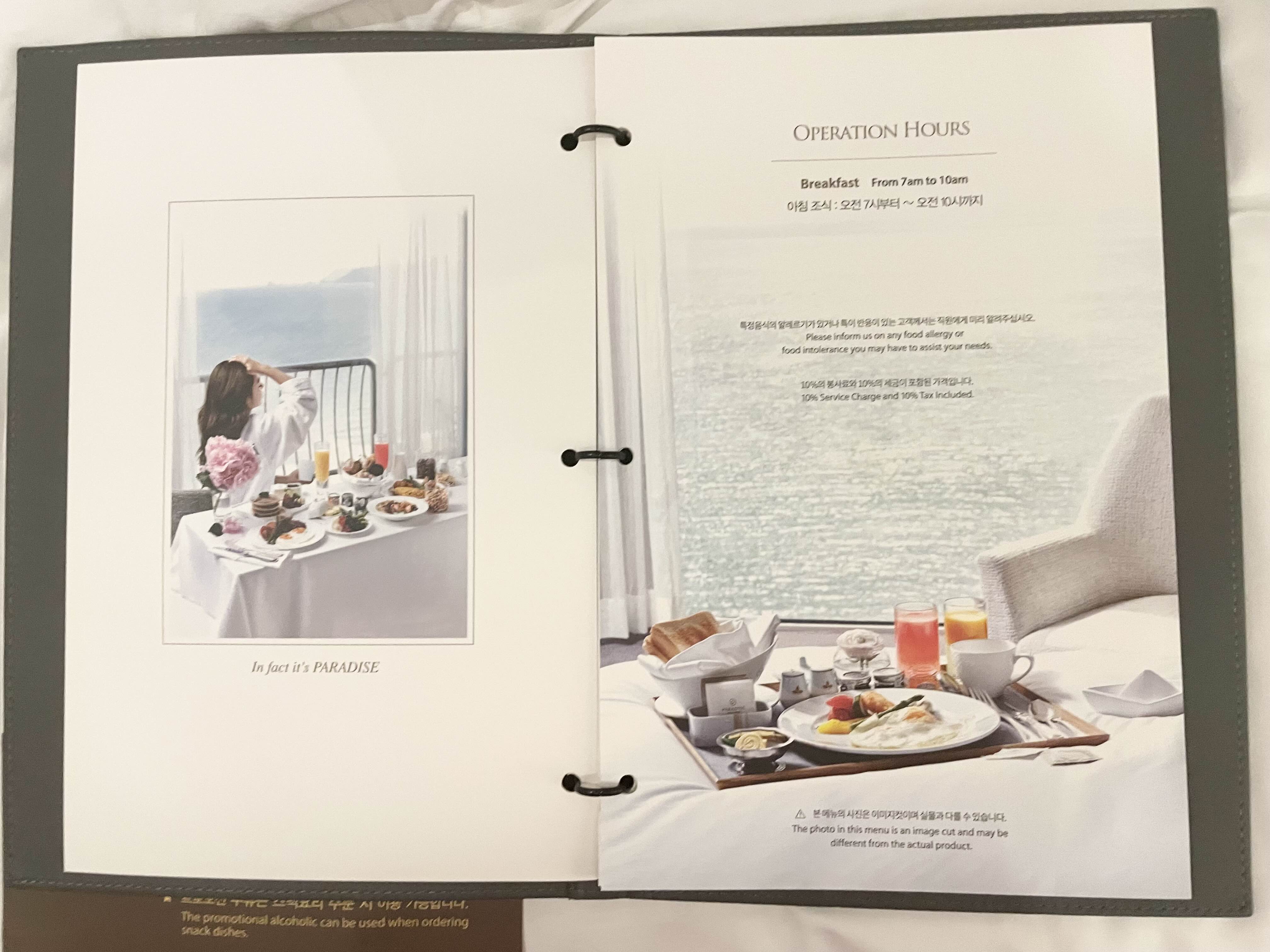 파라다이스 호텔 부산 룸서비스 breakfast from 7am to 10am 이니까요