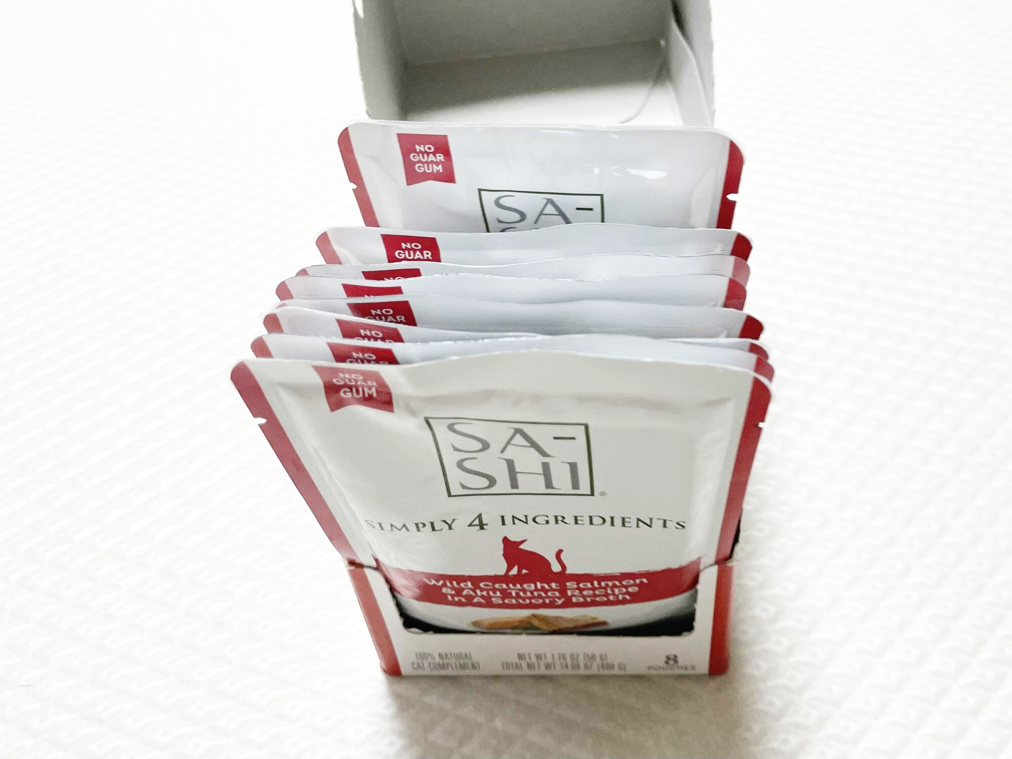 위에 보이는 로우즈 사시 파우치 한박스는 연어&참치 파우치입니다.