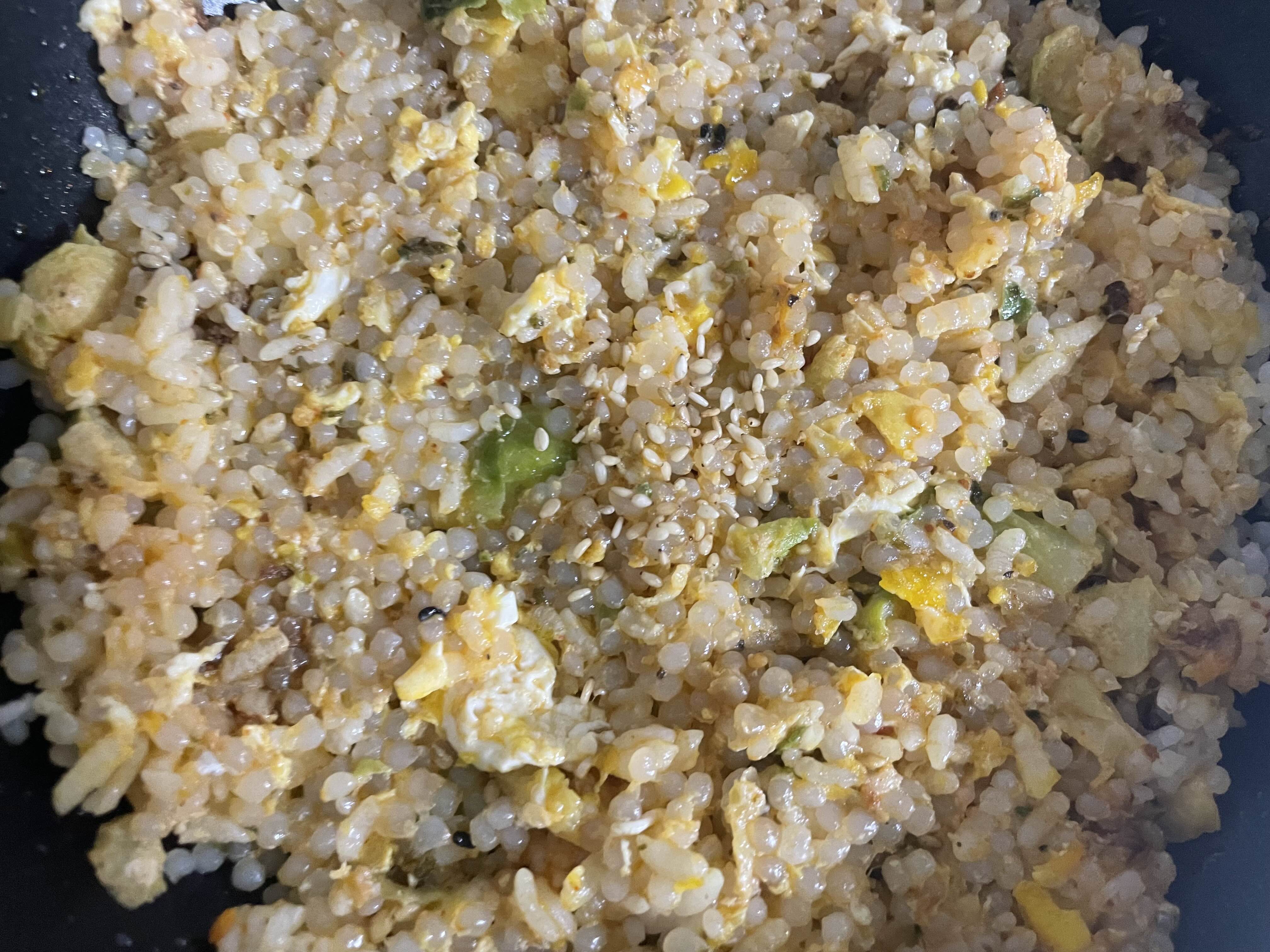 그래서 바로 남은 오일에 밥과 계란 같이 볶아서 먹었지요~