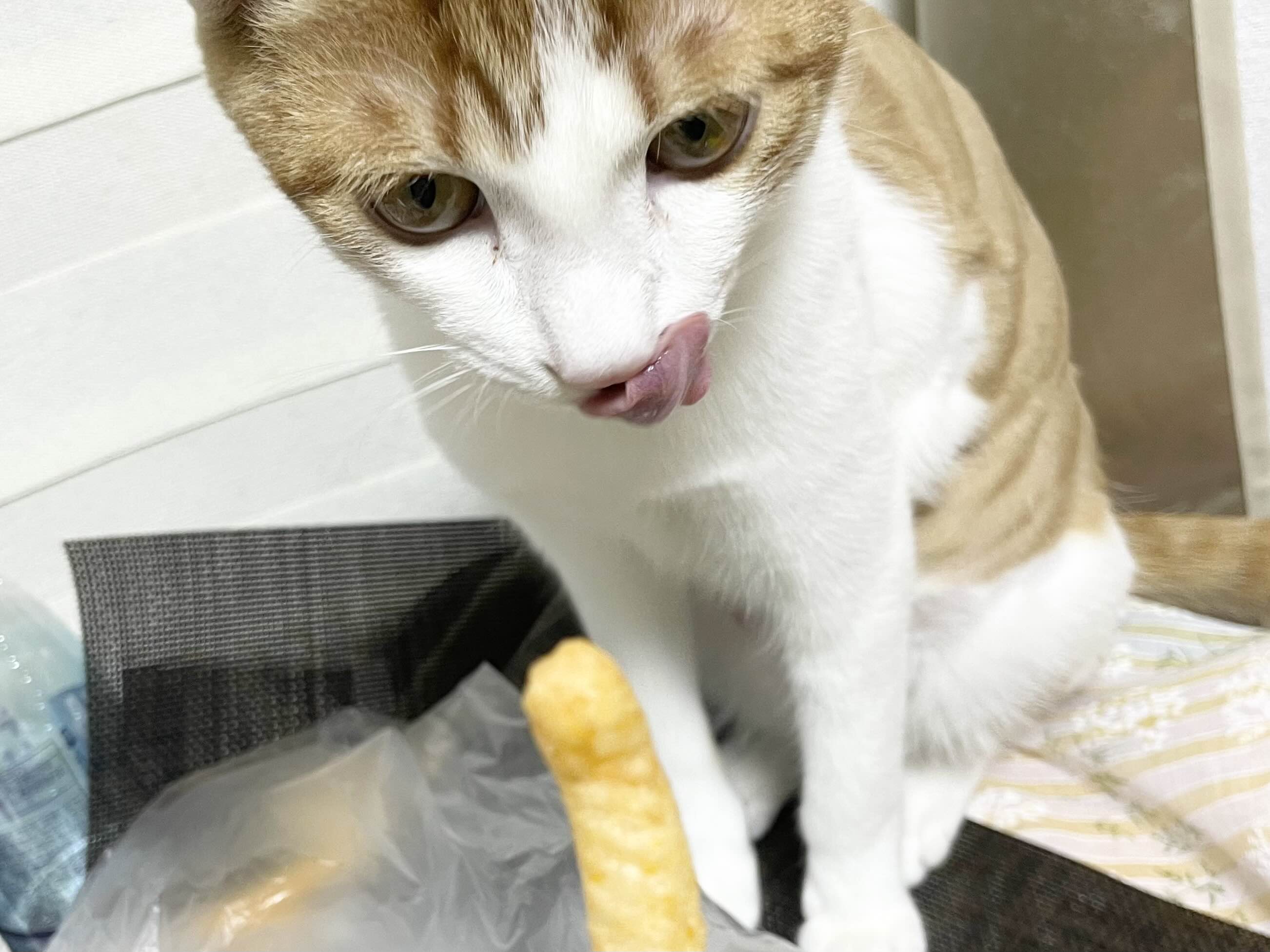 고양이가 좋아하는 새우냄새가 나는지 입맛을 다시면서 먹을 기회를 엿보는 모습도 찍혔습니다