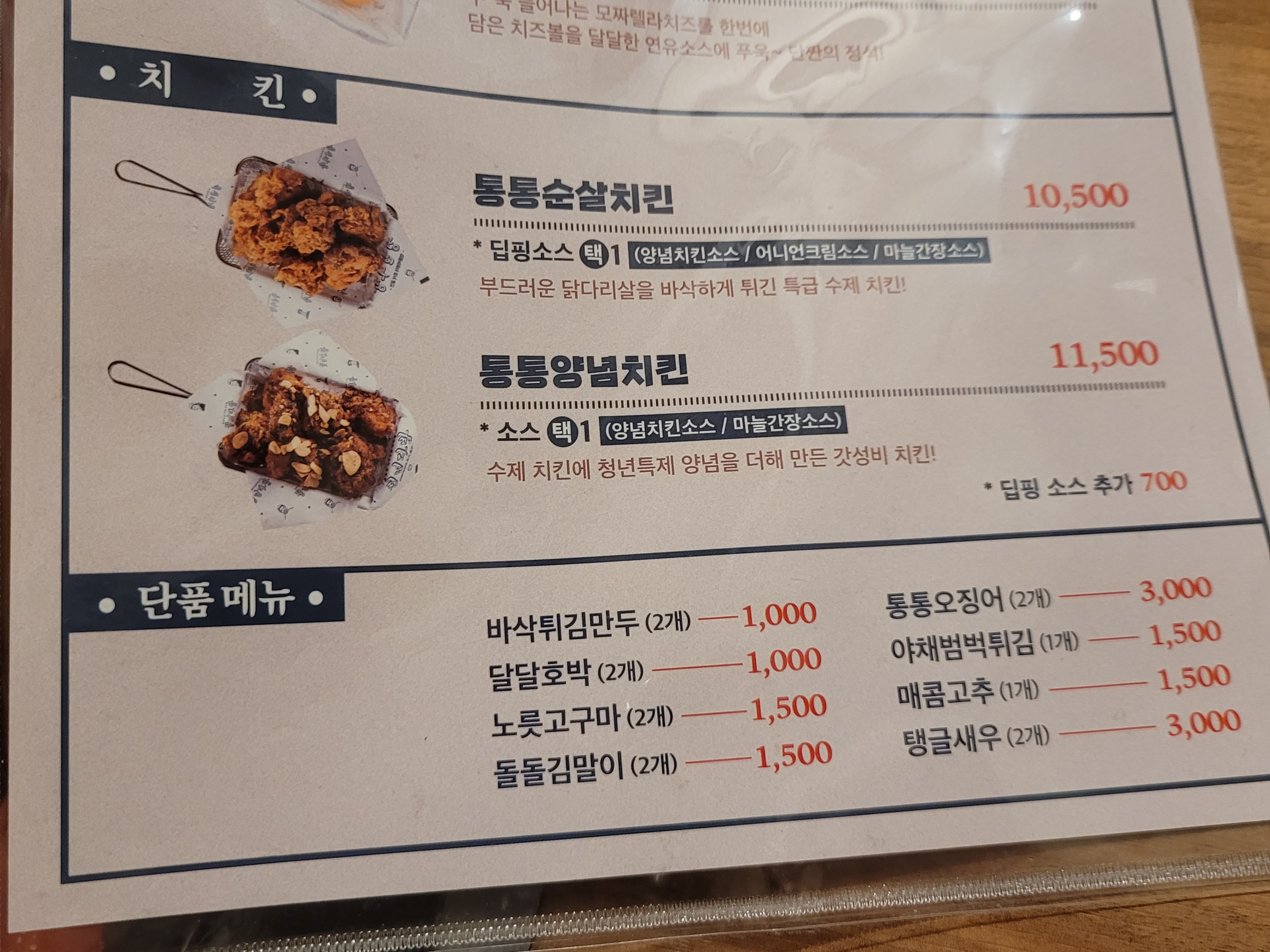 물론 치킨을 사리 말고 단품으로 시킬 수도 있습니다.