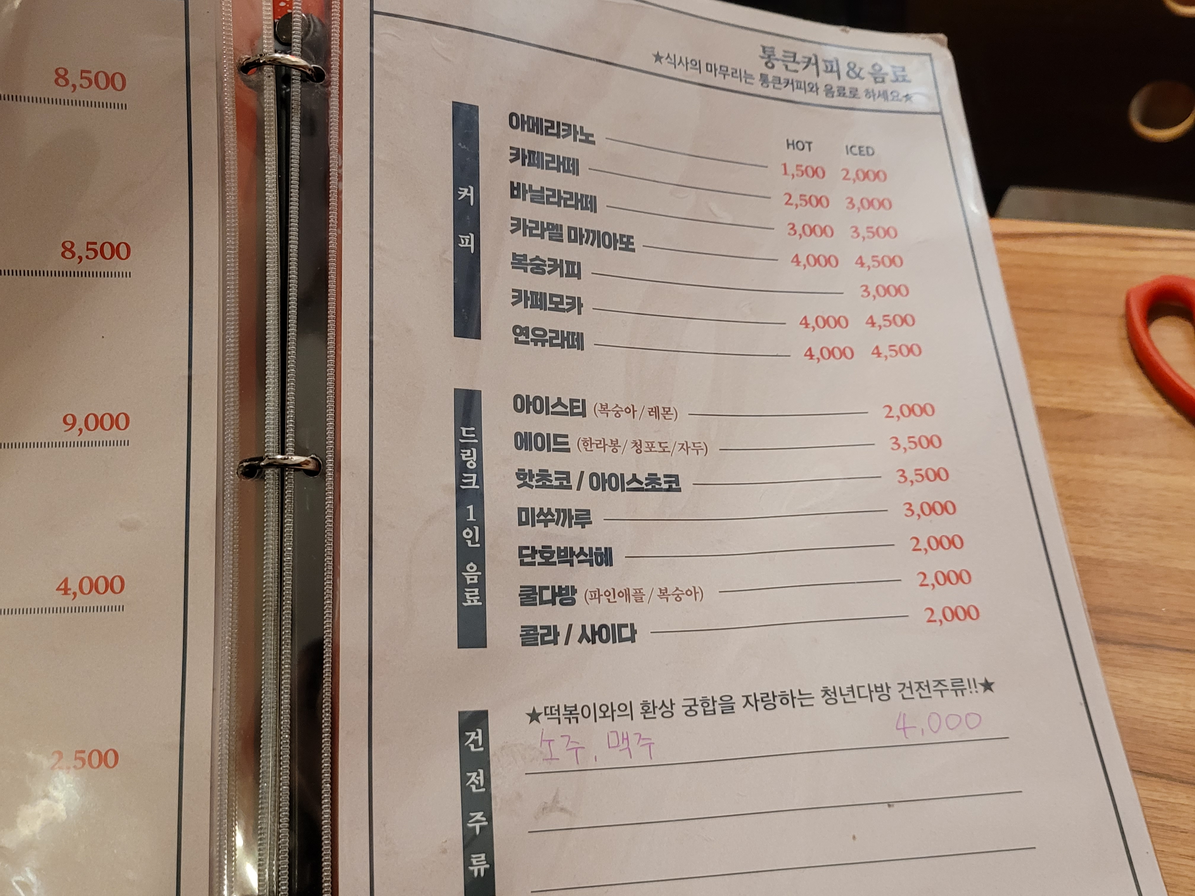 맥주한잔하면서 분식먹기 참 좋은 곳인데요 커피도 같이 파는 음식점입니다.