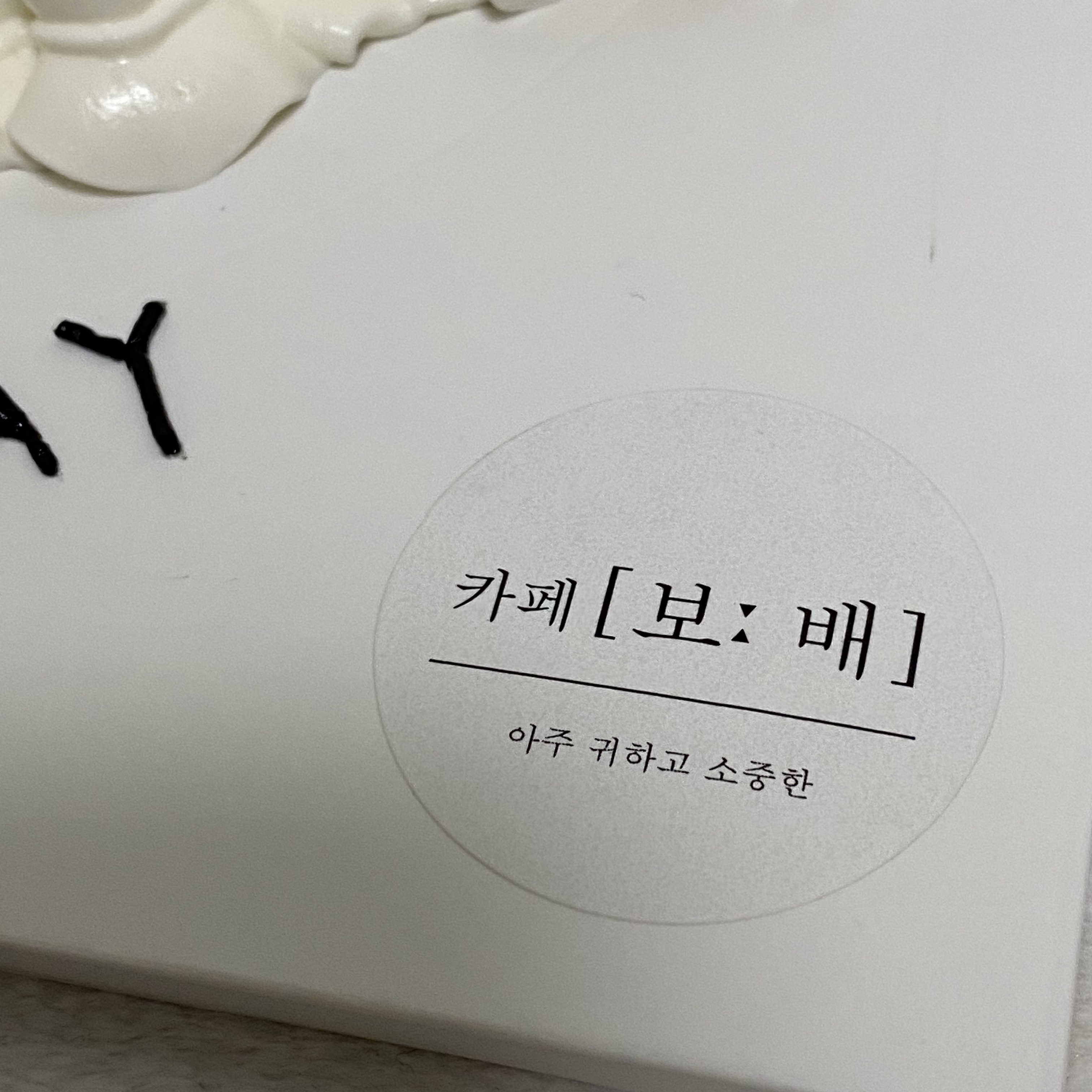 가지고 오는 과정에서 저의 불찰로 케이크가 조금 흔들렸습니다.