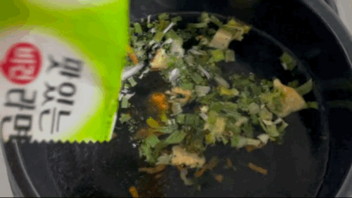 -끓는물 550ml에 면과 분말스프 후레이크 조미유를 모두 넣고 5분간 더 끓인 후 드십시오