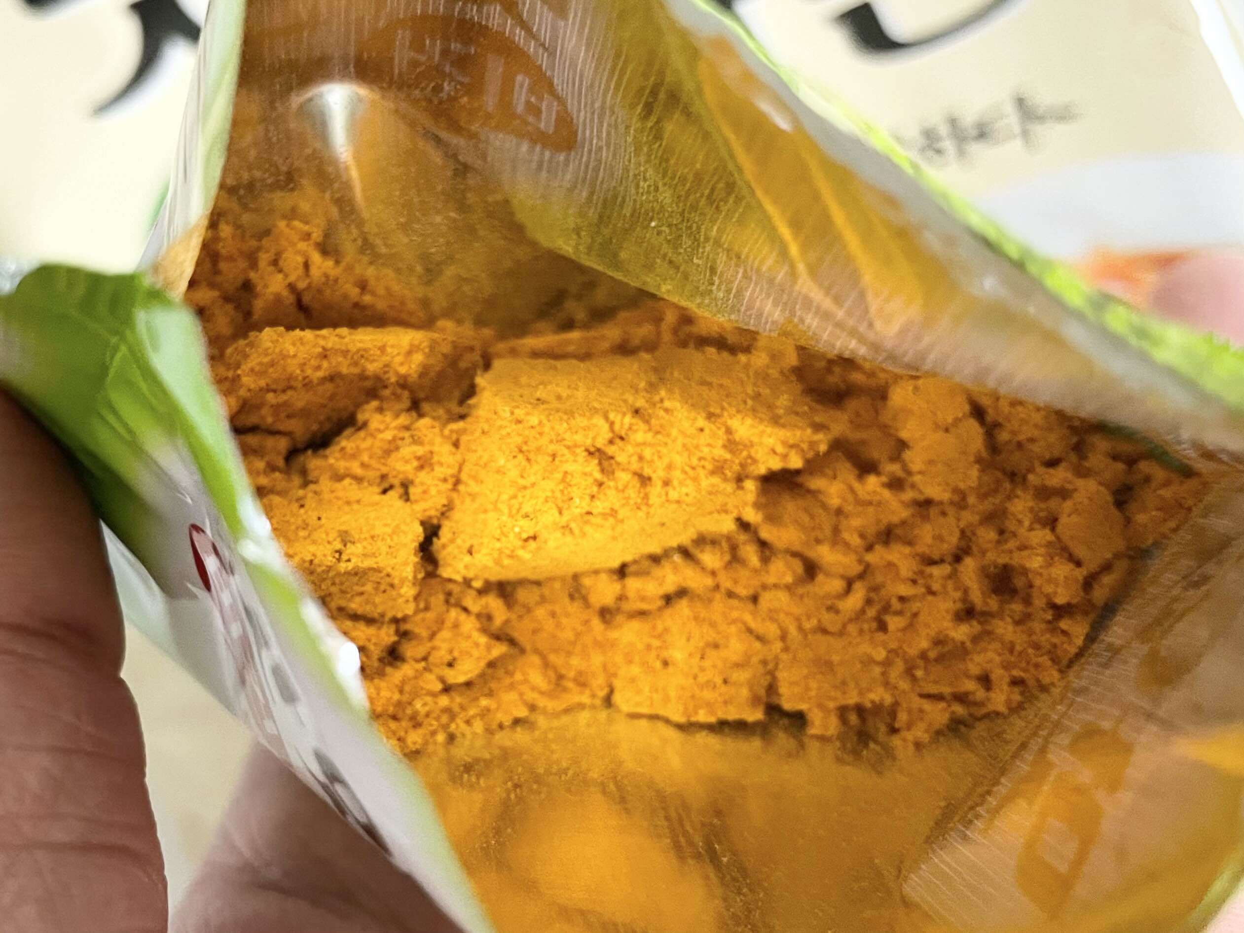 채식 라면답게 스프는 일반 라면에 비해 빨갛다기 보다 주황색에 가까웠습니다.