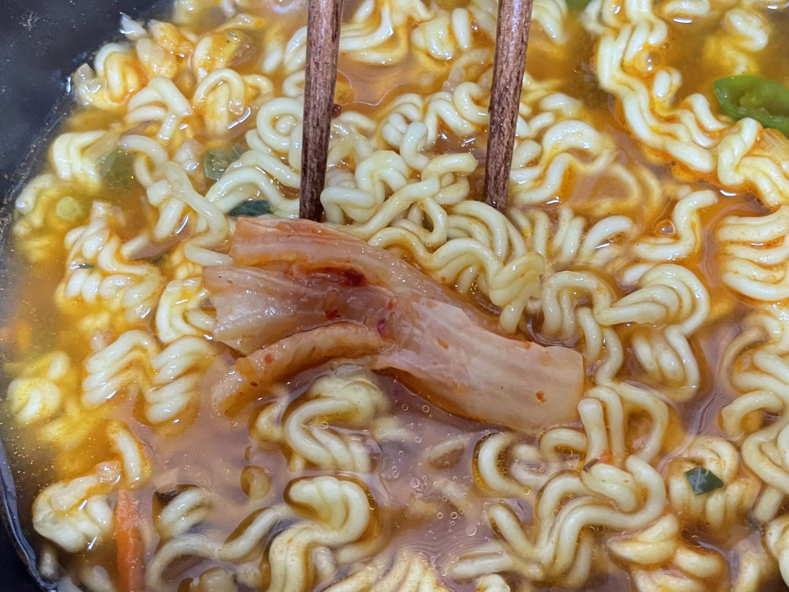 채식 라면이지만 김치가 빠지면 서운하니까요!