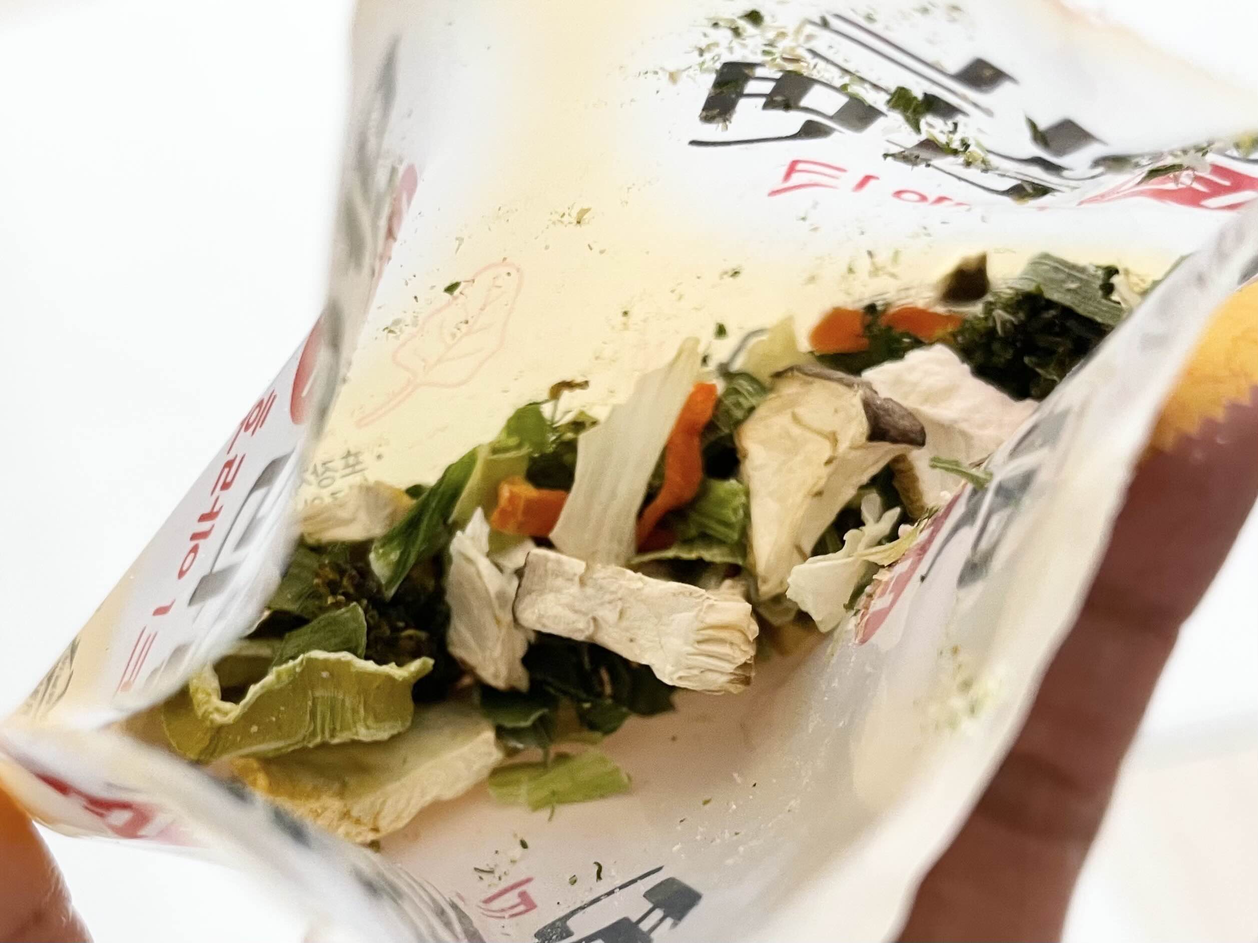 총 분말스프, 후레이크, 조미유 세가지가 들어있었습니다