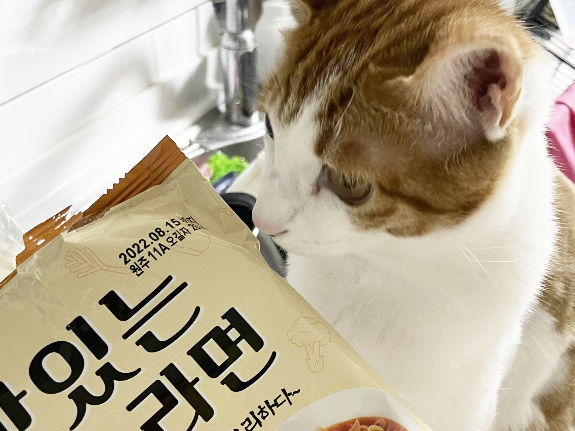 고양이는 육식동물이라 저칼로리 음식 채식 라면에는 관심이 없을 듯 합니다ㅋㅋ