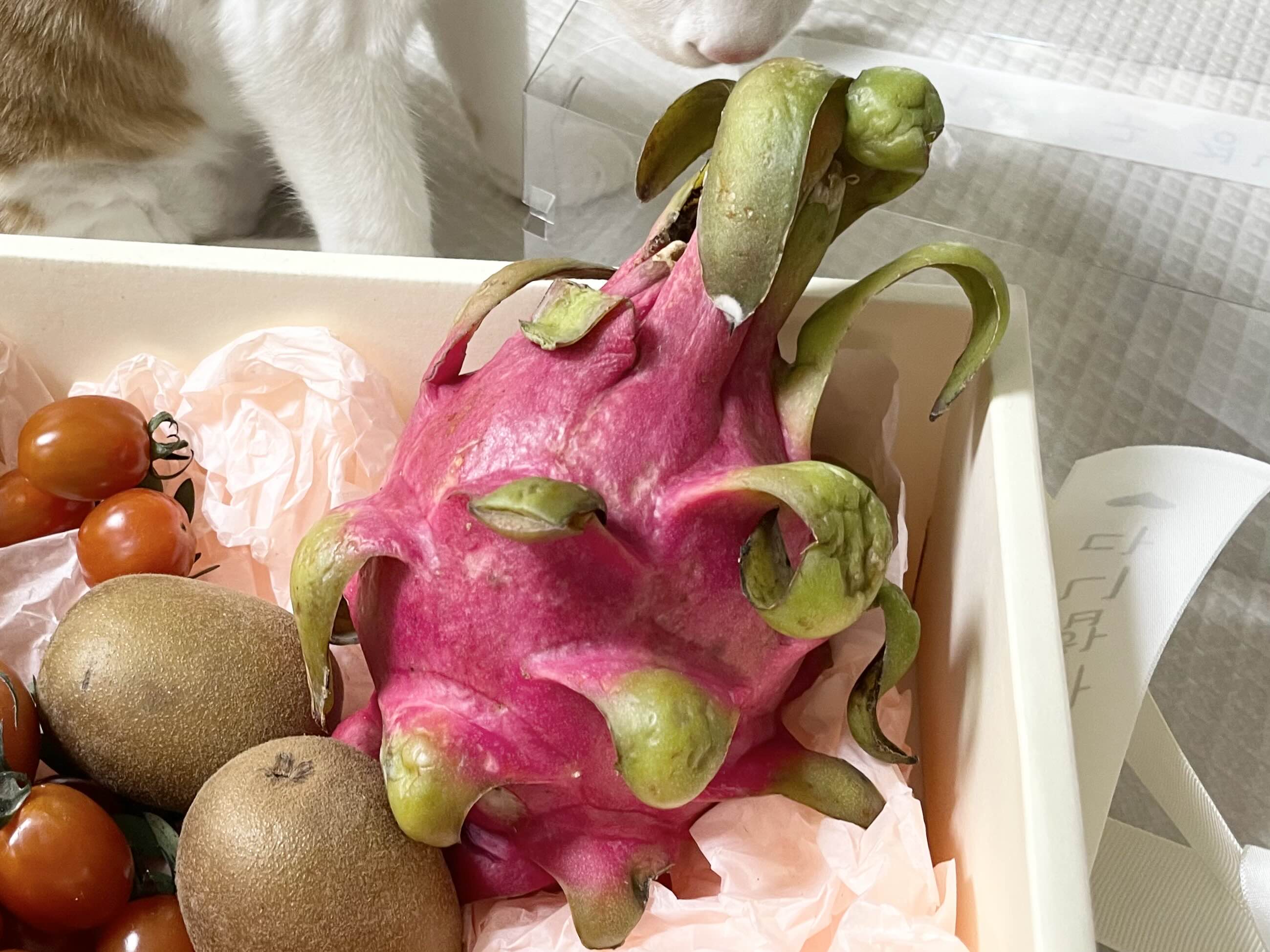 저희집 애옹님께서 용과 냄새를 계속 맡던걸 보니 이게 뭔지 제일 궁금해하는 것 같았습니다