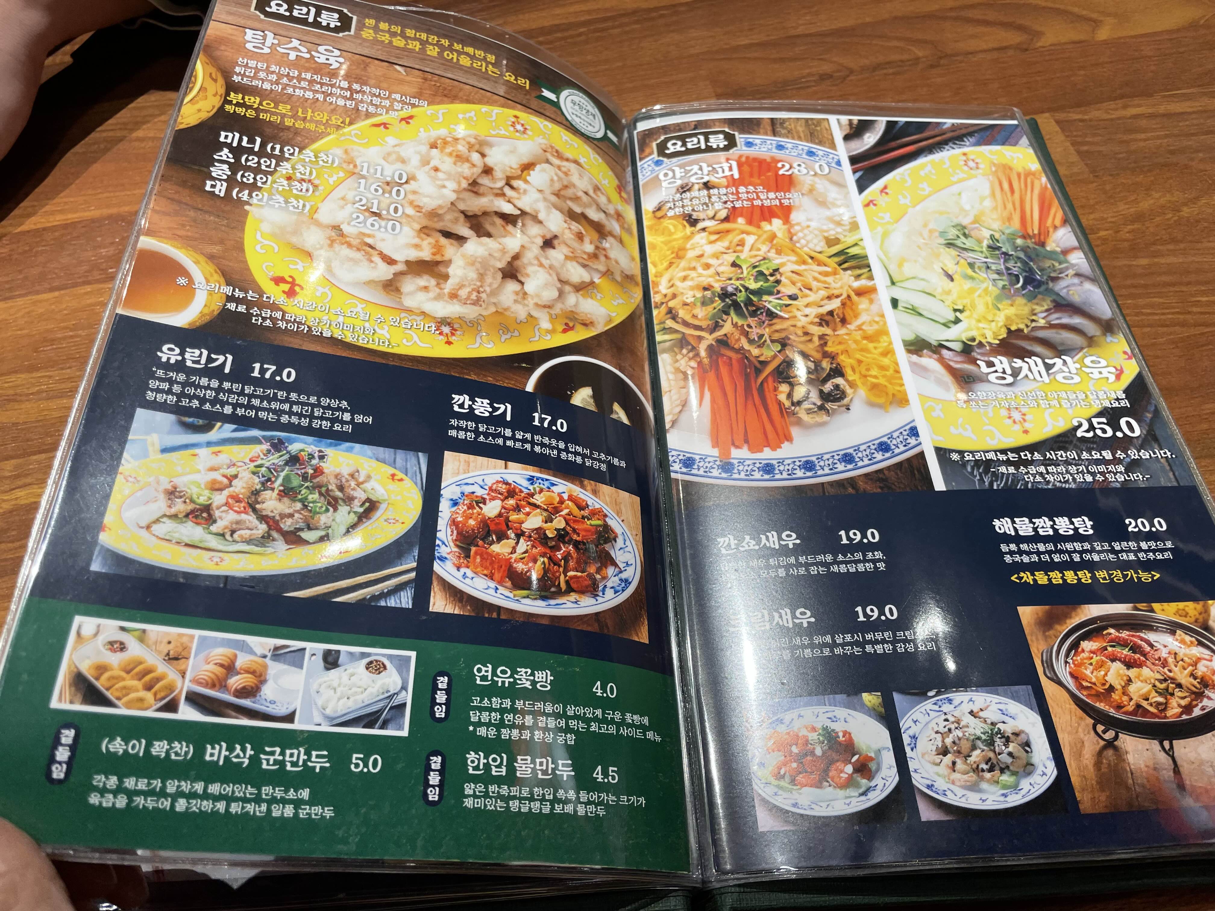 -유린기 17000원 -깐풍기 17000원 -냉채장육 25000원
