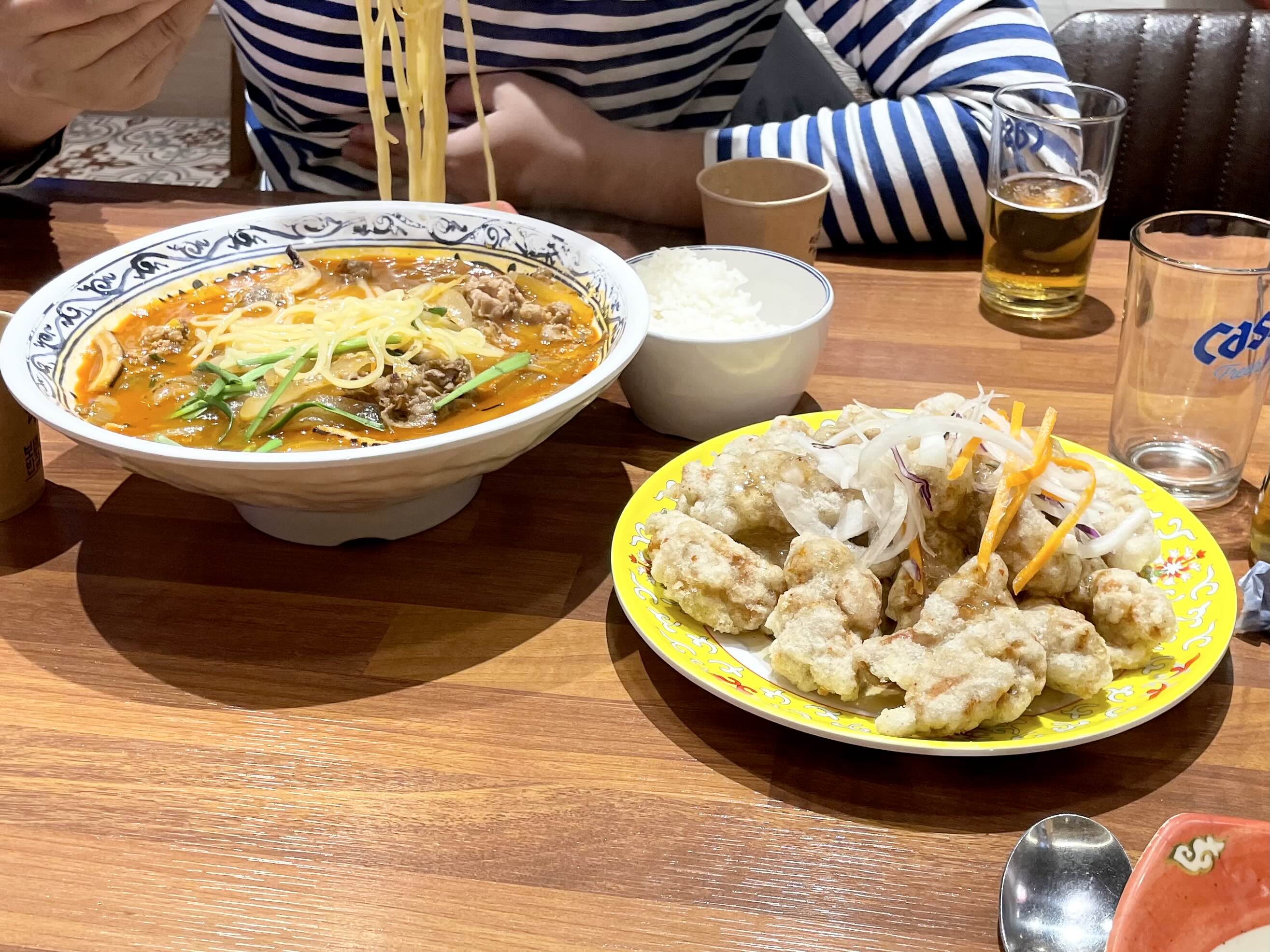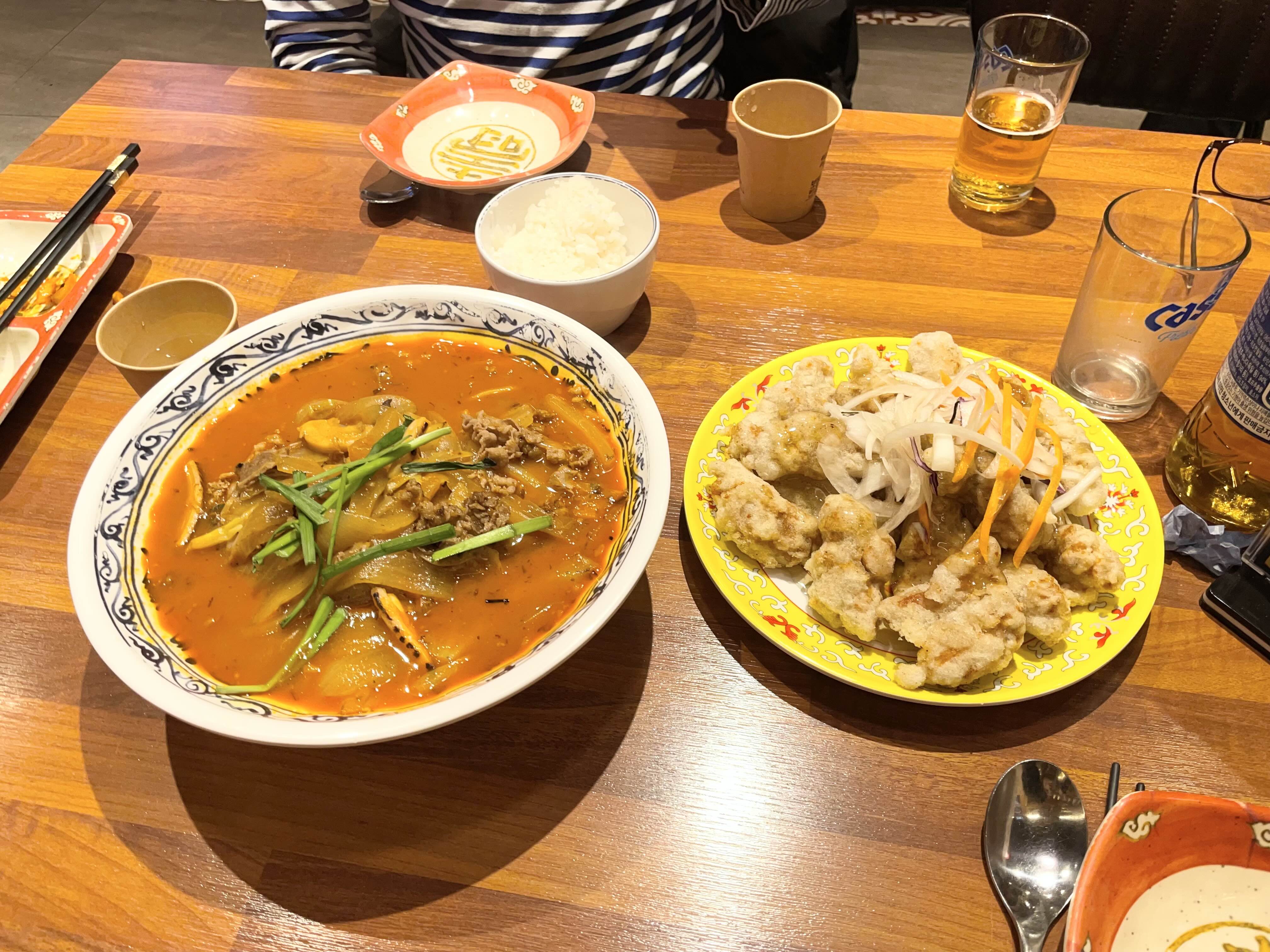 저희는 보배반점 메뉴 추천을 받아 소고기짬뽕과 미니탕수육 그리고 맥주를 시켰습니다.