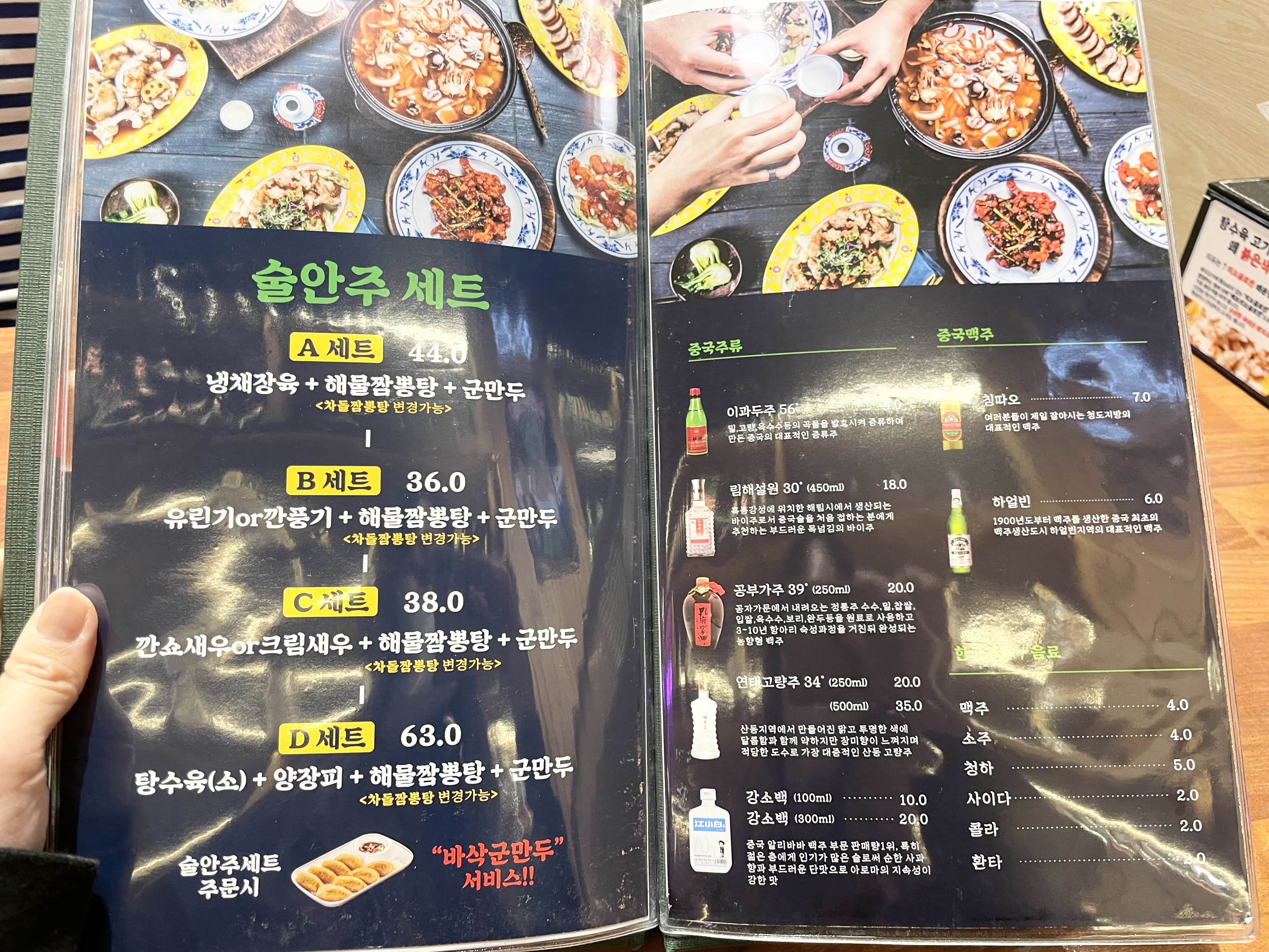A세트:냉채장육+해물짬뽕탕(차돌짬뽕탕)+군만두 44000원