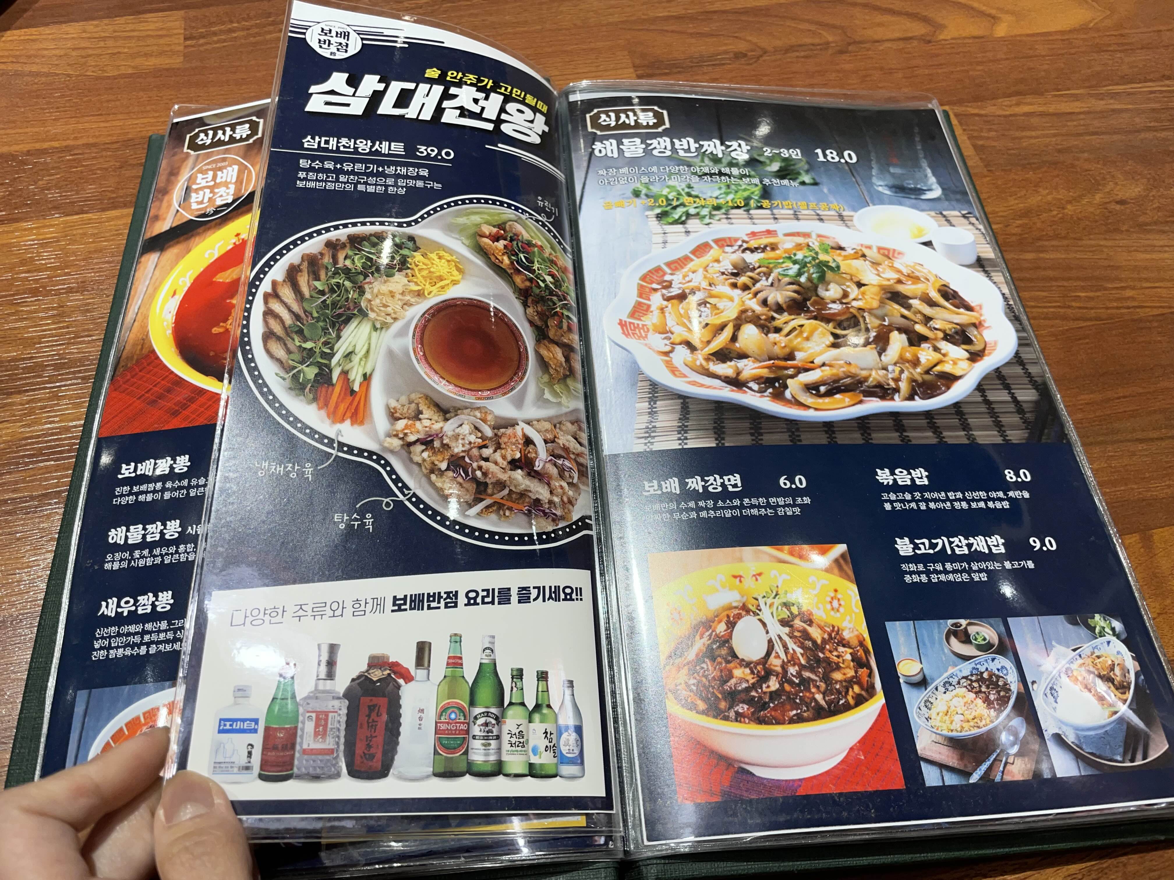 메뉴를 보시면 짬뽕 먹으러 들어오지 않았던 분들도 하나는 시키게 되는 짬뽕 맛집 보배반점입니다 ㅋㅋ