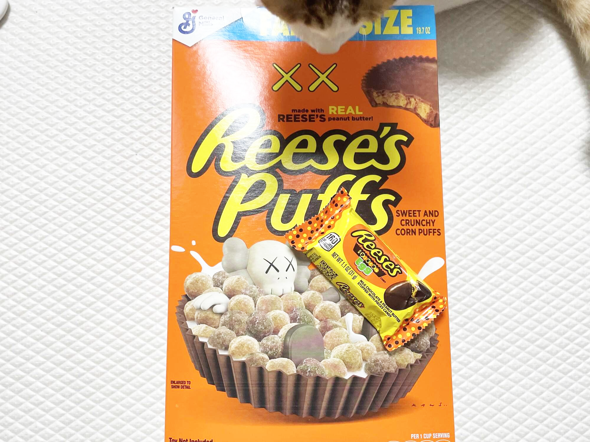 그래놀라 시리얼만 먹다가 지겨워져서 제네럴밀스 시리얼을 구경하는데 카우스와 콜라보한 리세스 퍼프가 있더라구요!