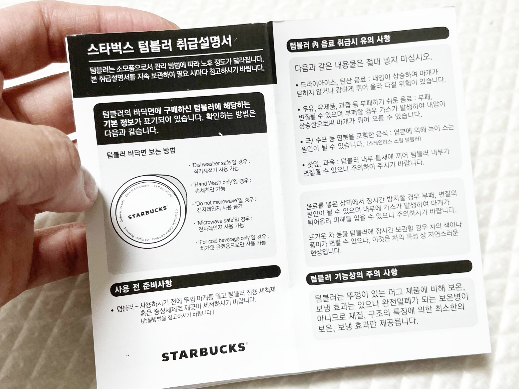 스타벅스 텀블러 바닥면에 기본정보가 표시되어 있으므로 확인하신 후 맞게 사용하면 되겠습니다.