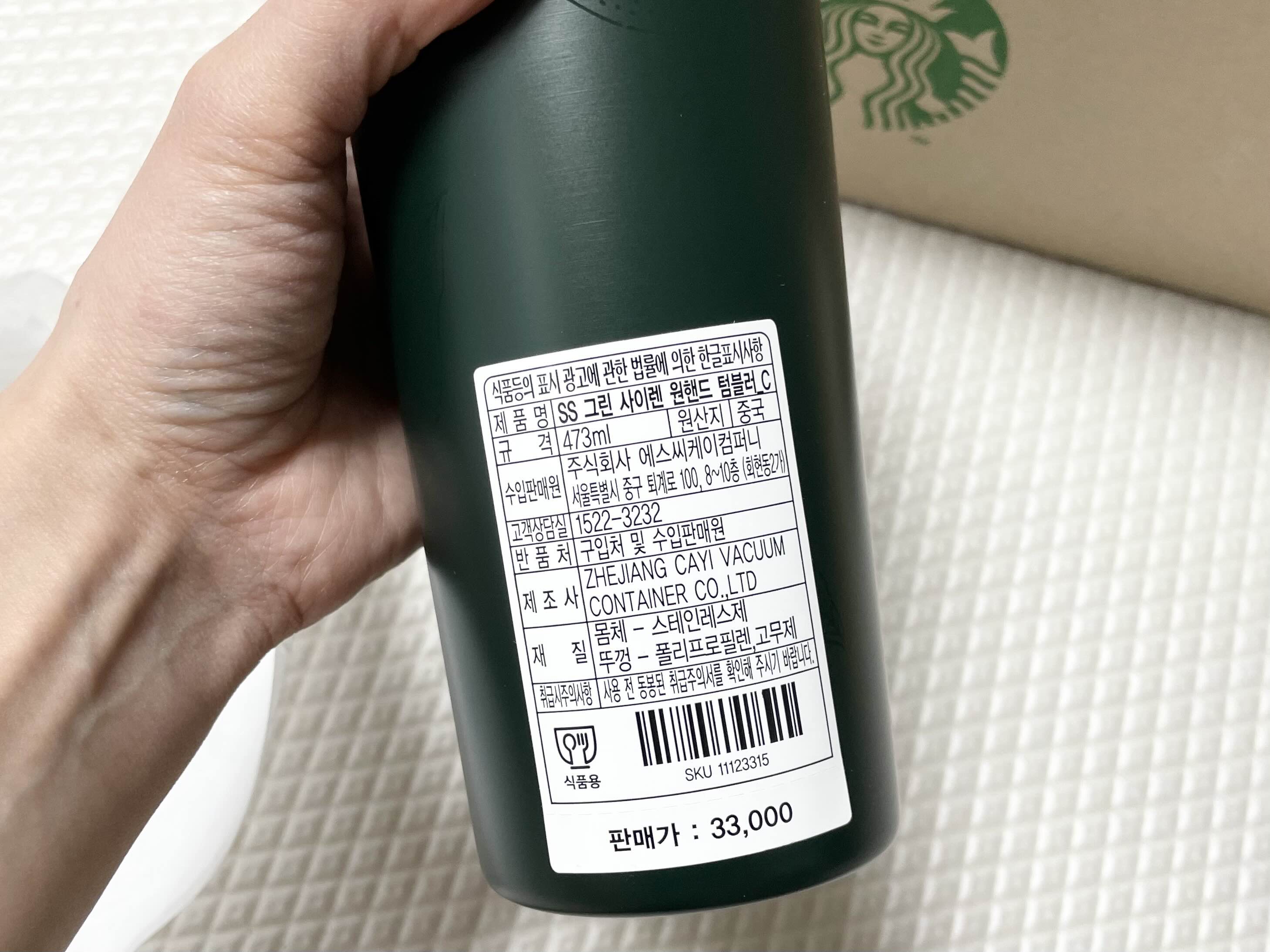 선물받은 스타벅스 텀블러는 몸체는 스테인레스제지만 뚜껑은 폴리프로필렌 고무제입니다.
