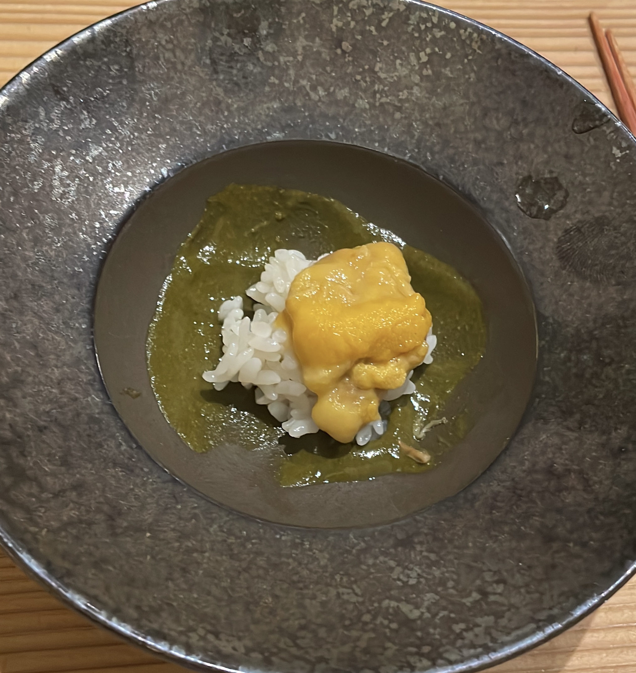 셰프께서 한입에 먹으라고 직접 건내주셨던 구운 관자 우니입니다.