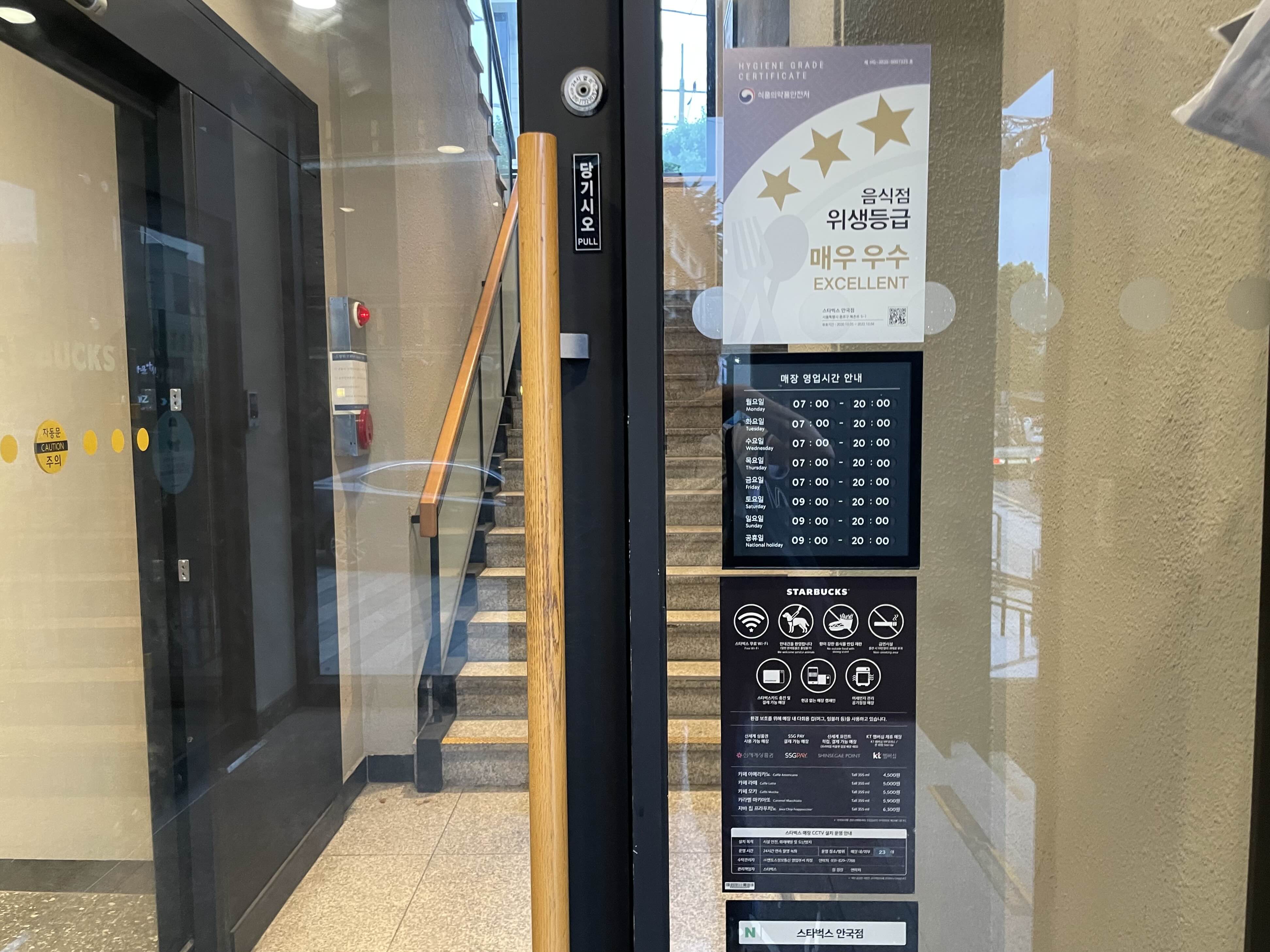 위생등급 매우 우수한 안국 스타벅스가 반겨주었습니다