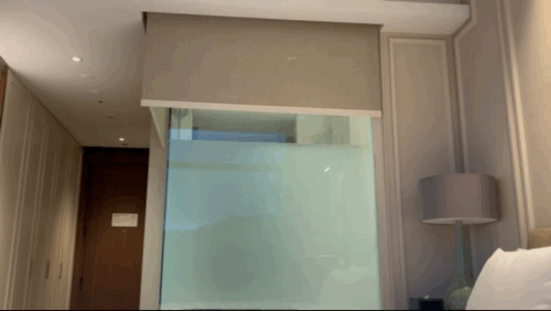 스위치를 누르면 편하게 목욕이 가능하도록 가림막을 내릴 수 있었습니다 ㅋㅋ