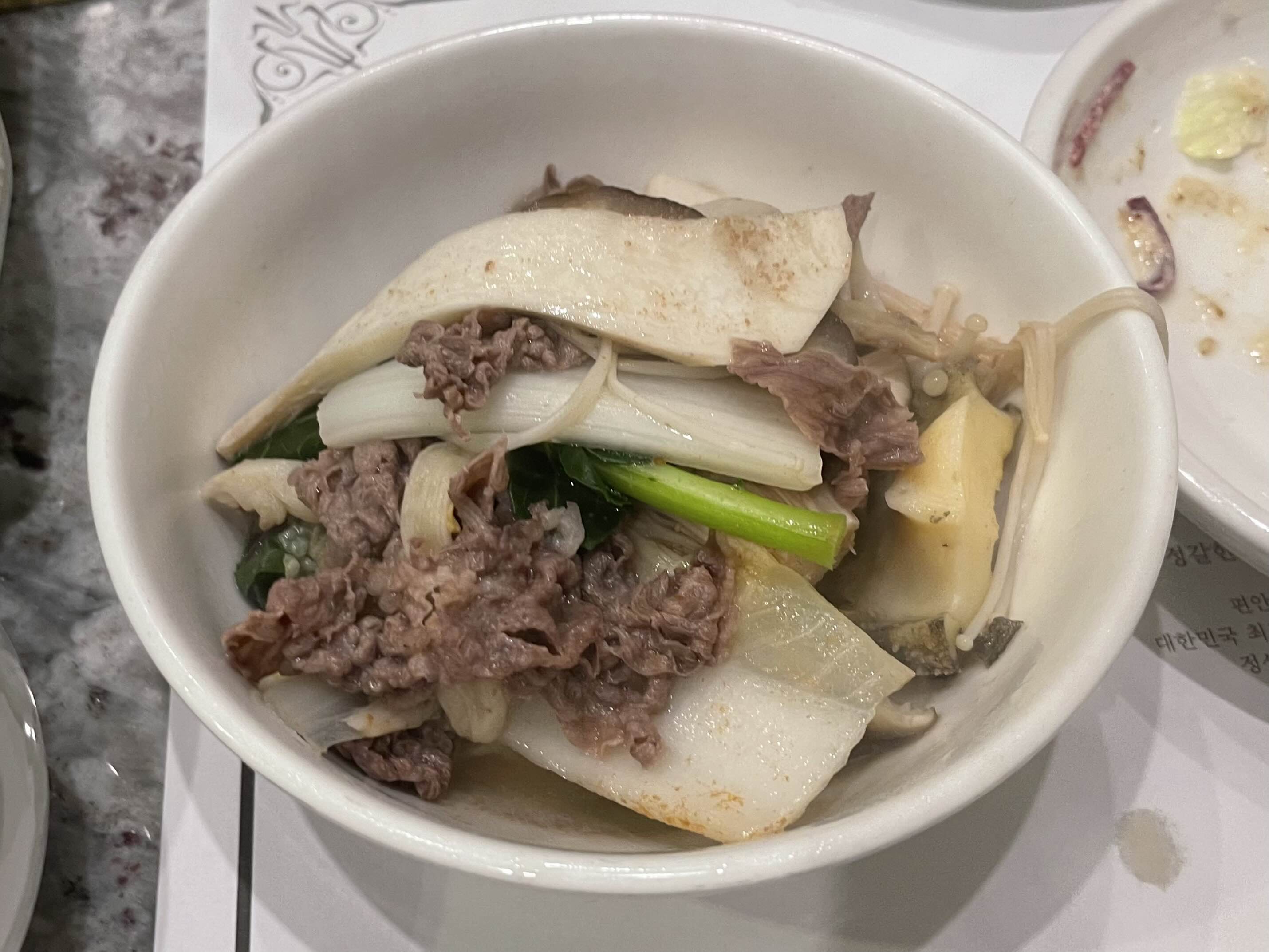 직원분께서 오시더니 야채와 소고기를 넣고 균등하게 배분해서 그릇에 담아주셨습니다 ㅋㅋ