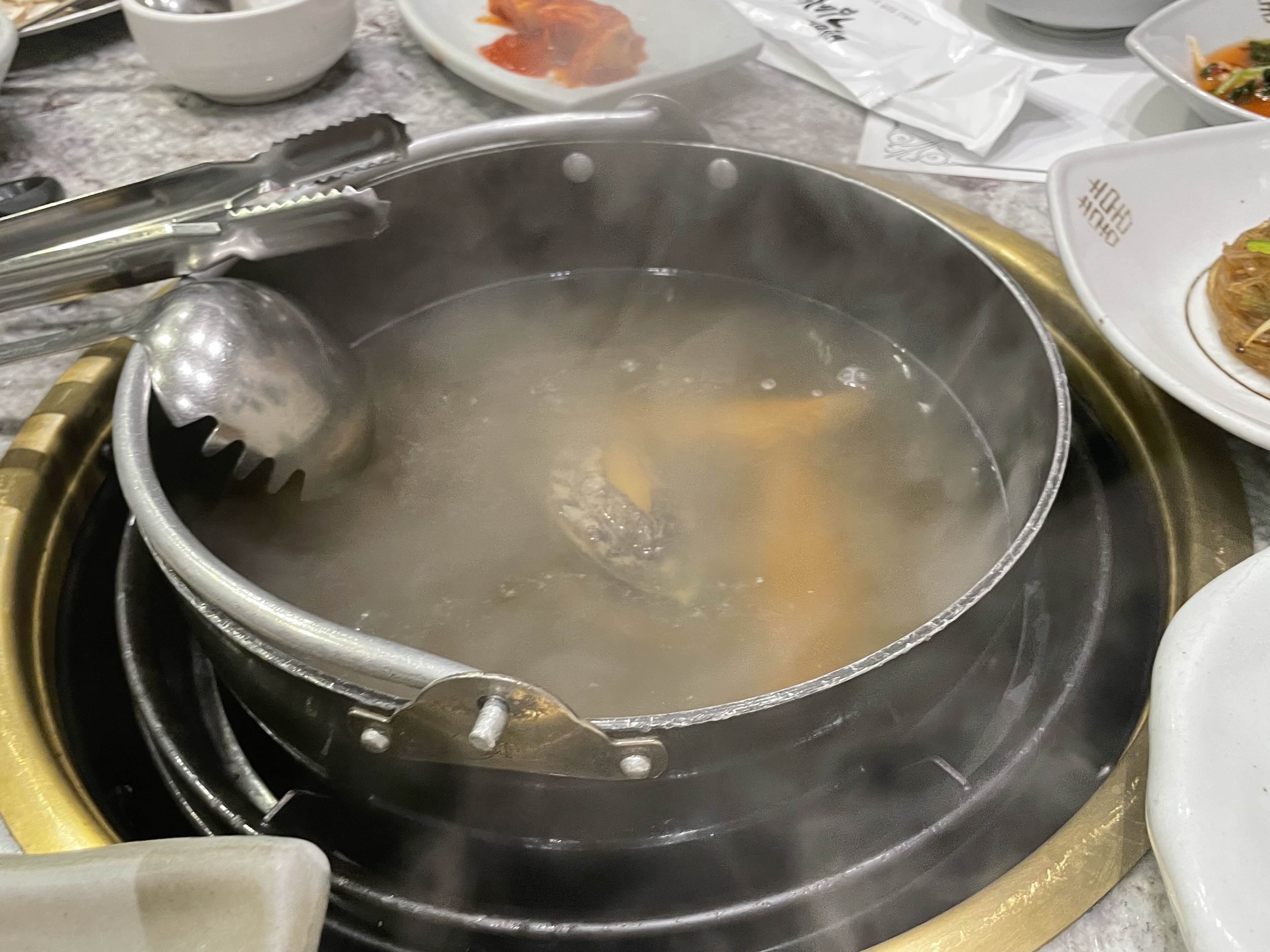 이렇게 전복과 새우를 넣고 팔팔 끓는데도 한참동안 안오시길래 먹어도 되는지 물어보려고 벨을 눌렀습니다 .. .ㅋㅋ