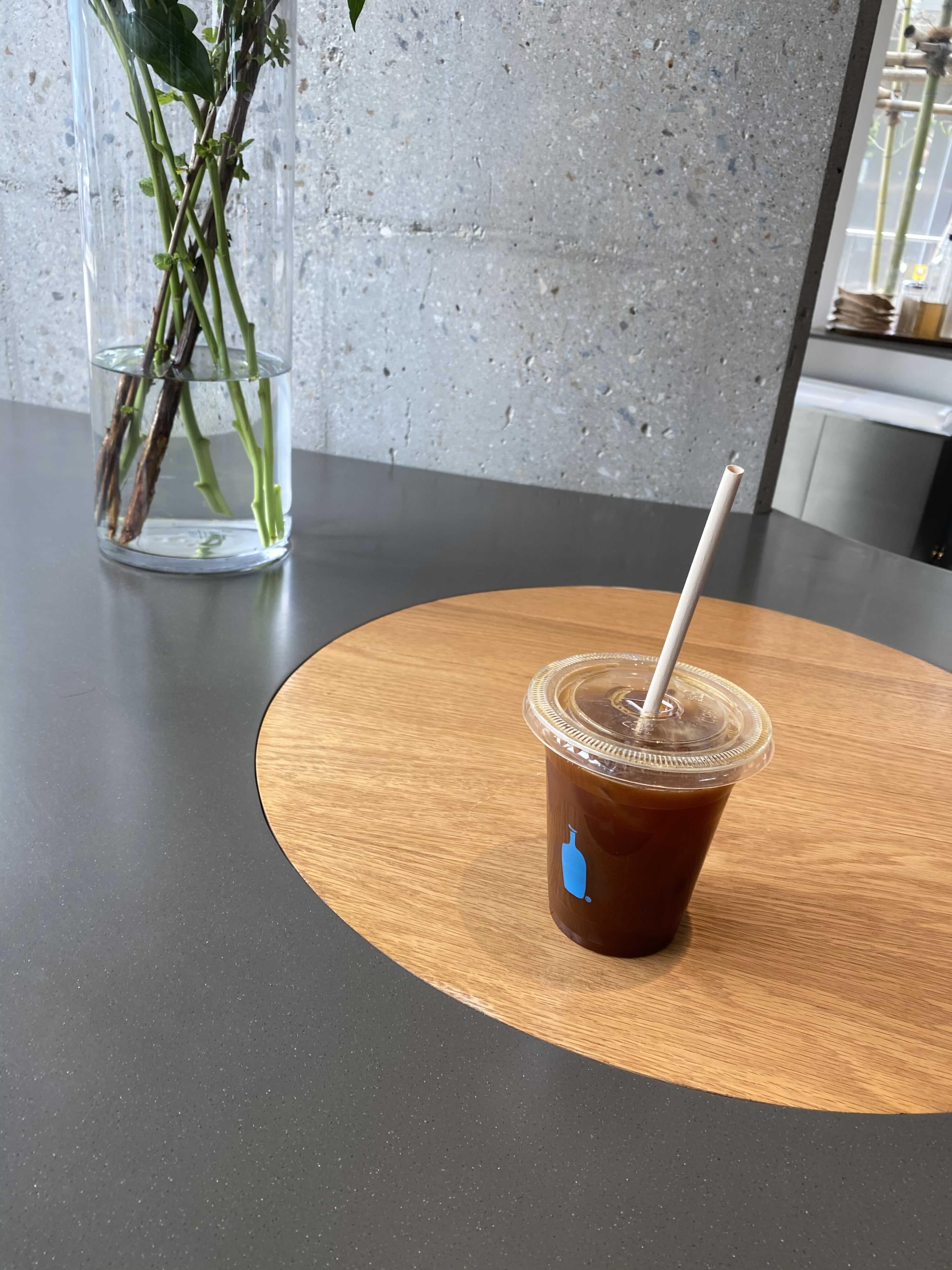 블루보틀의 아이스아메리카노 테이크아웃을 기다리는 저의 모습입니다.