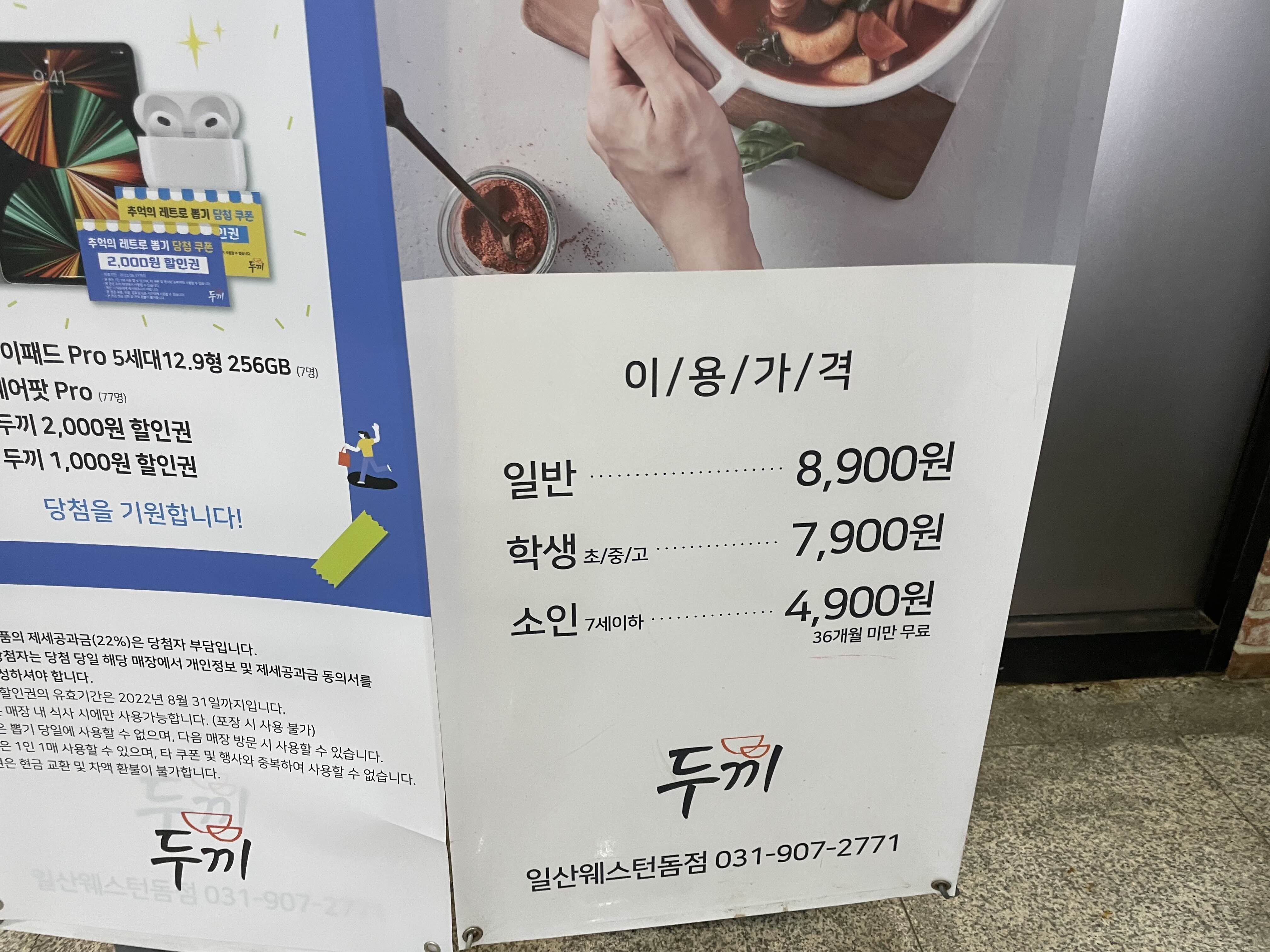 두끼 떡볶이 가격은 일반 8900/ 학생 7900/ 소인 4900 입니다