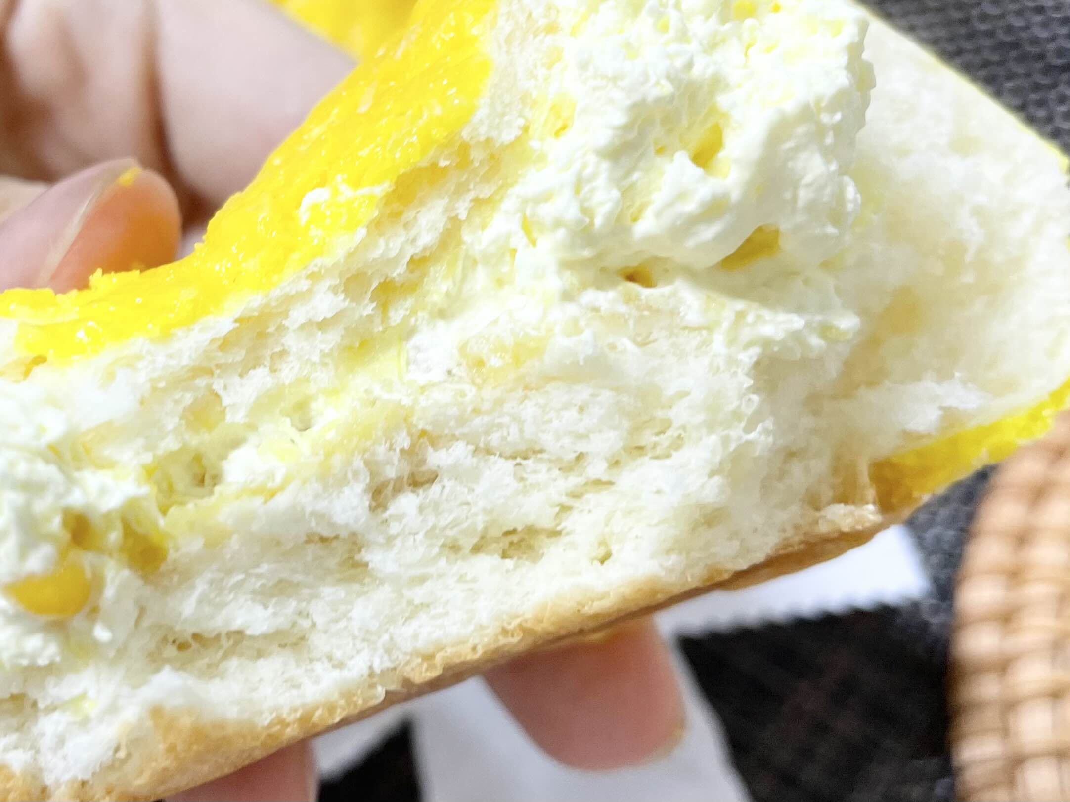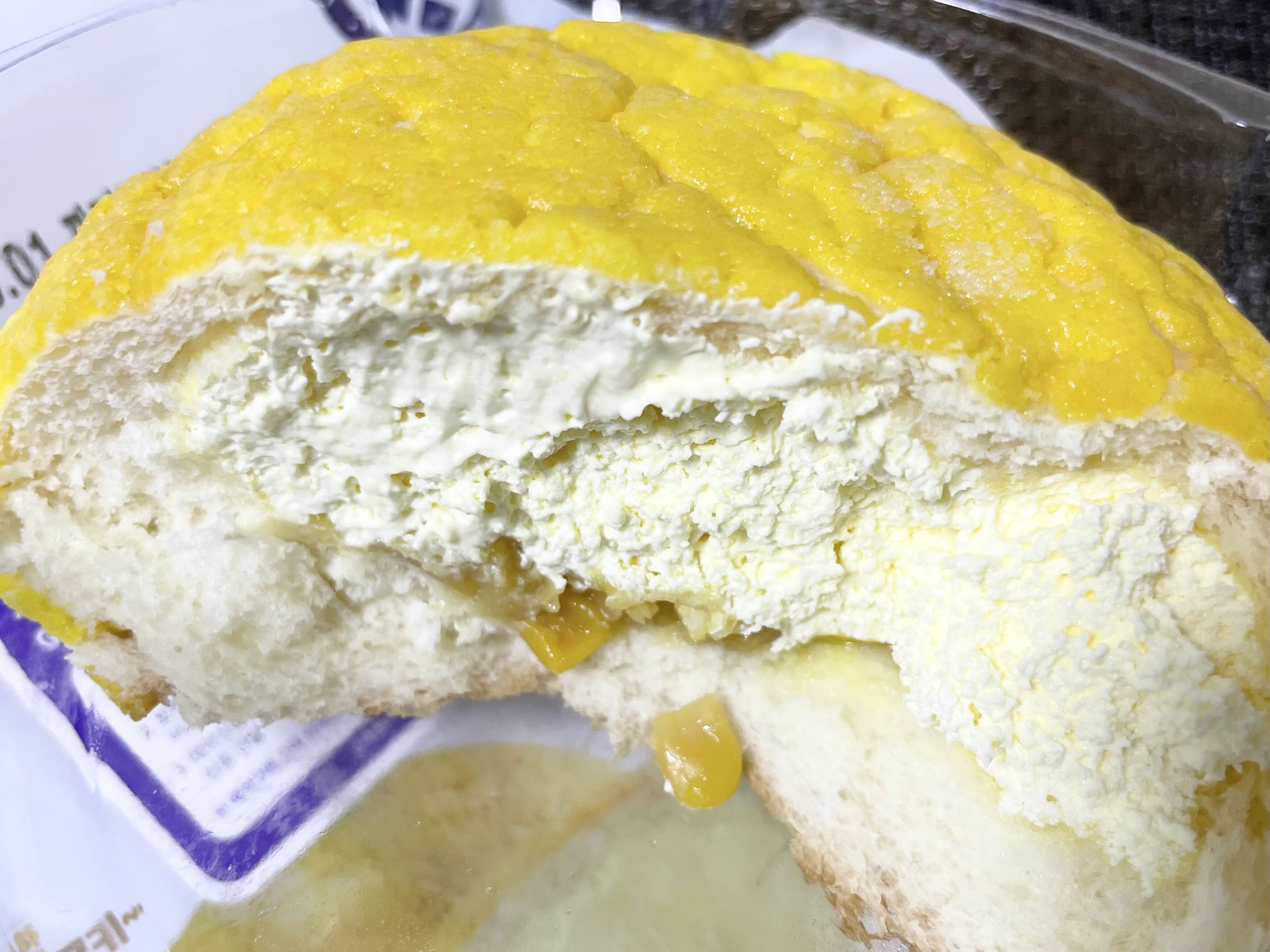 겉에는 소보루 느낌의 촉촉한 빵피였고 안에는 옥수수맛 크림이 잔뜩 있었습니다