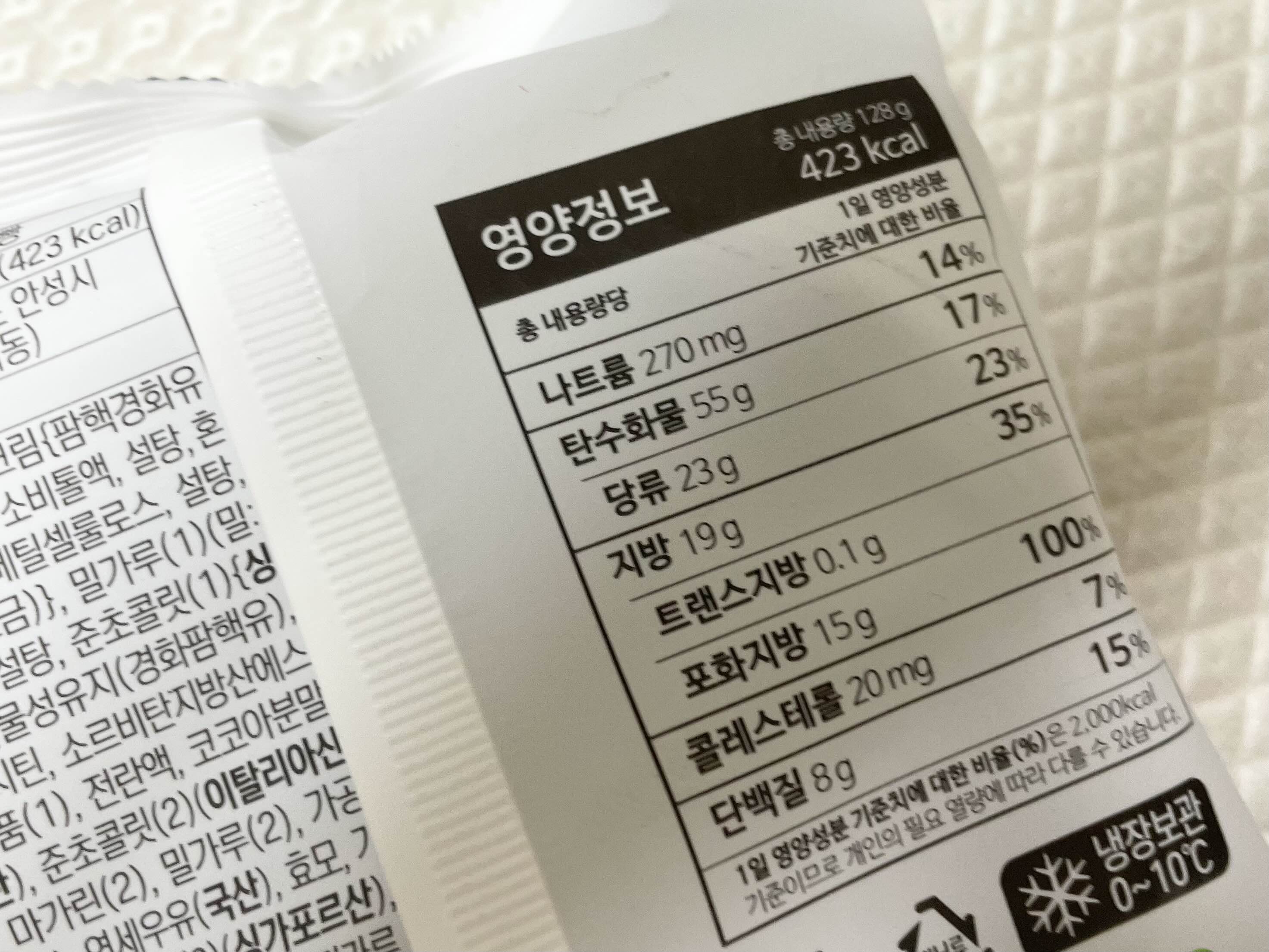 CU 편의점 연세우유 생크림 빵 초코맛 칼로리는 423kcal 구요