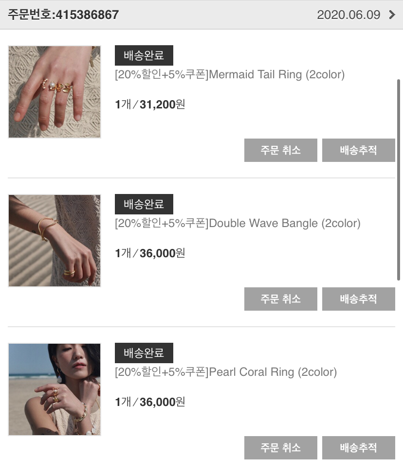 제가 구매한 어거스트하모니(August harmony)의 팔찌와 반지 가격과 이름입니다