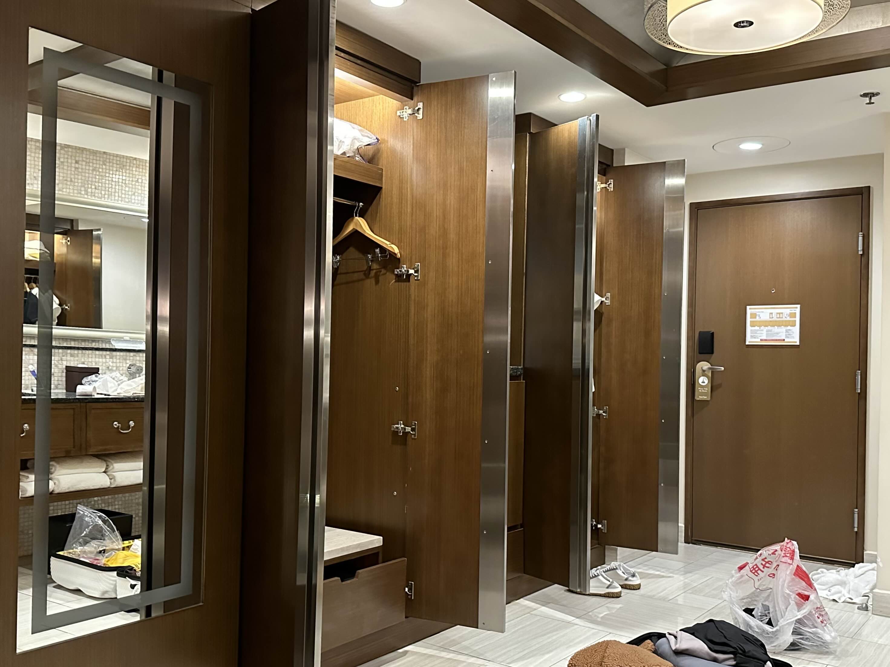 호텔 오면 먼저 짐을 열고 옷을 펴서 걸어놓는데 옷걸이가 모자를 때가 많거든요