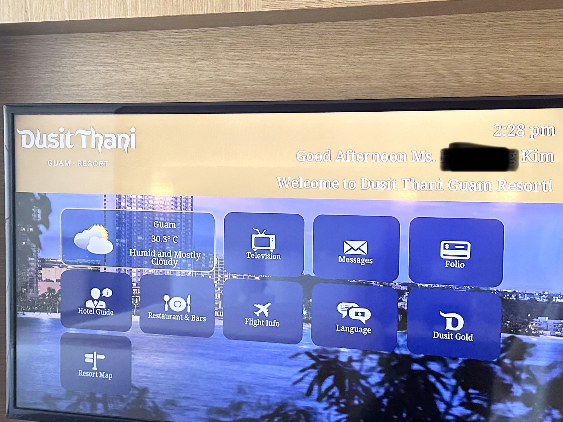 커텐을 젖히면 두짓타니 괌 리조트가 한눈에 보입니다