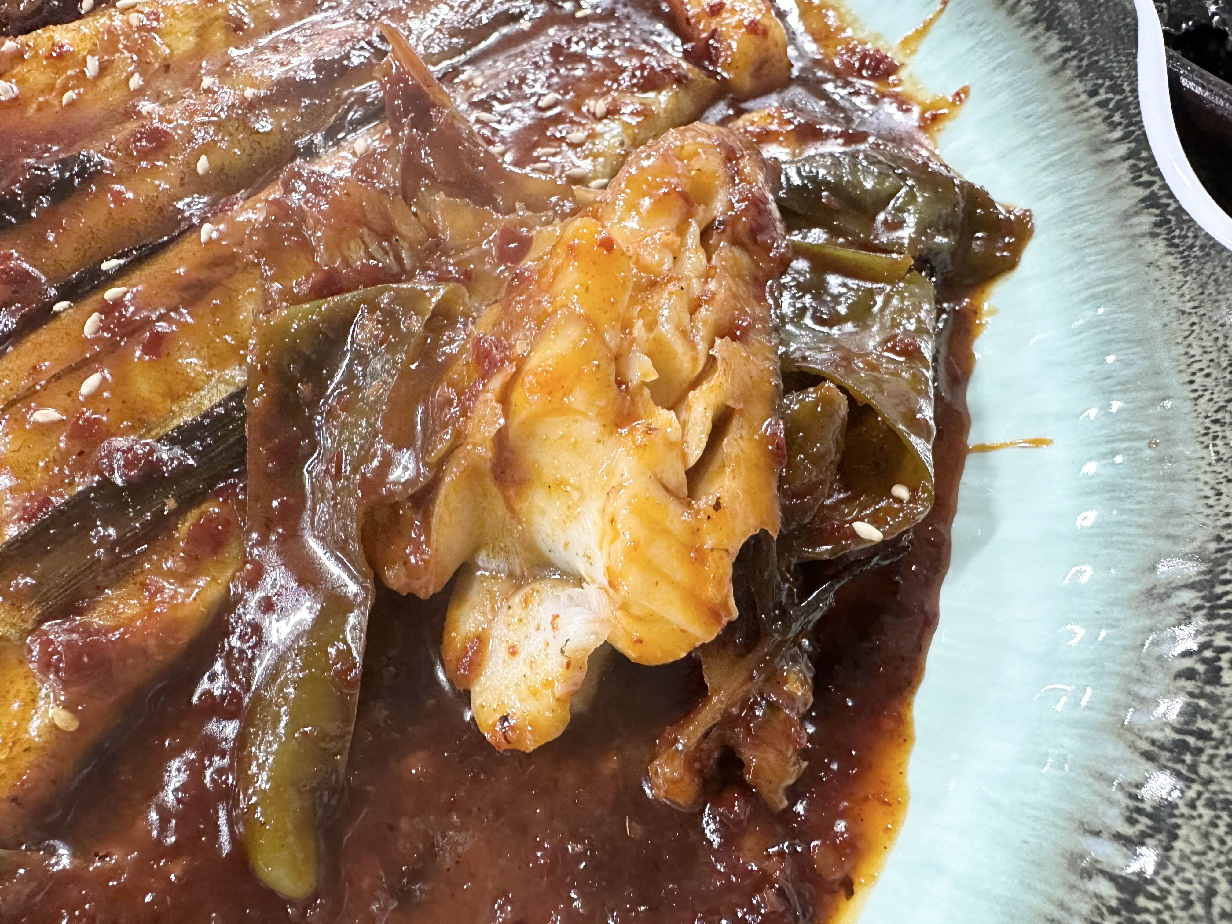 소스가 너무 맛있어서 먹다 남은 걸 포장해달라는 분들이 많으신 것 같은데 생선이 남아야 포장이 가능한 것 같습니다