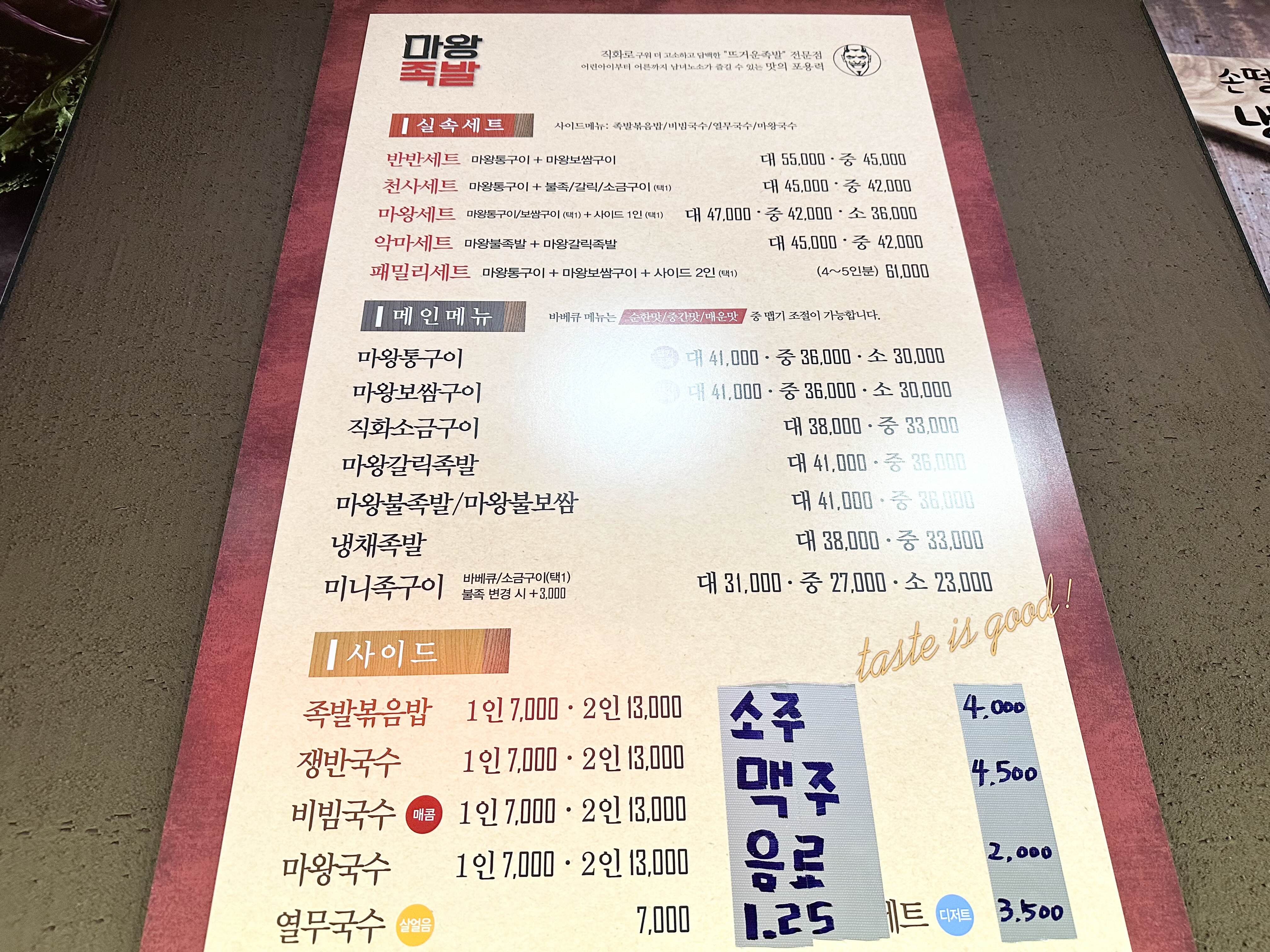 역시 마왕족발 가격은 족발집답게 다소 부담이 있는 편입니다