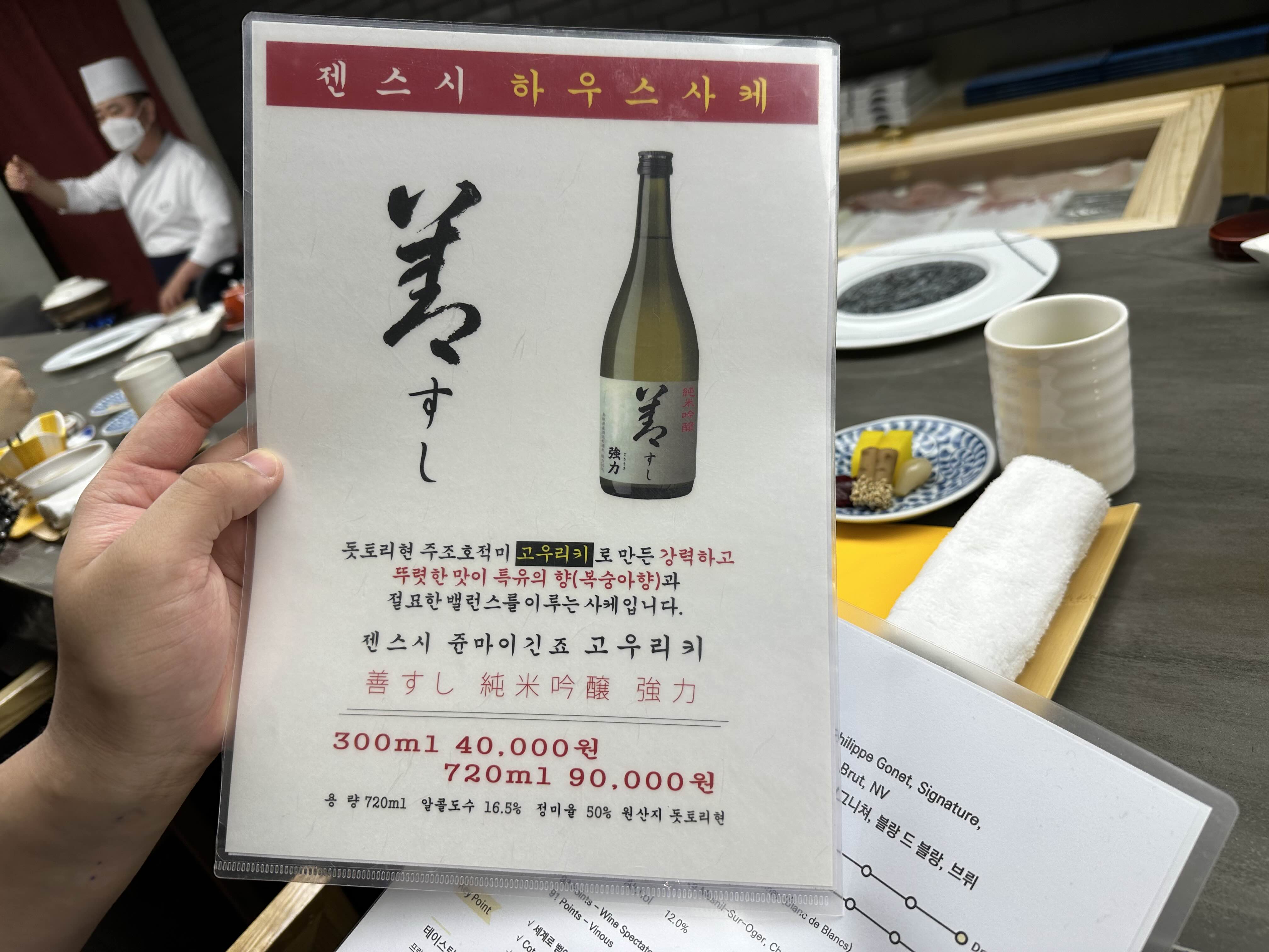 부산 해운대 오마카세 젠스시의 술 종류와 가격입니다