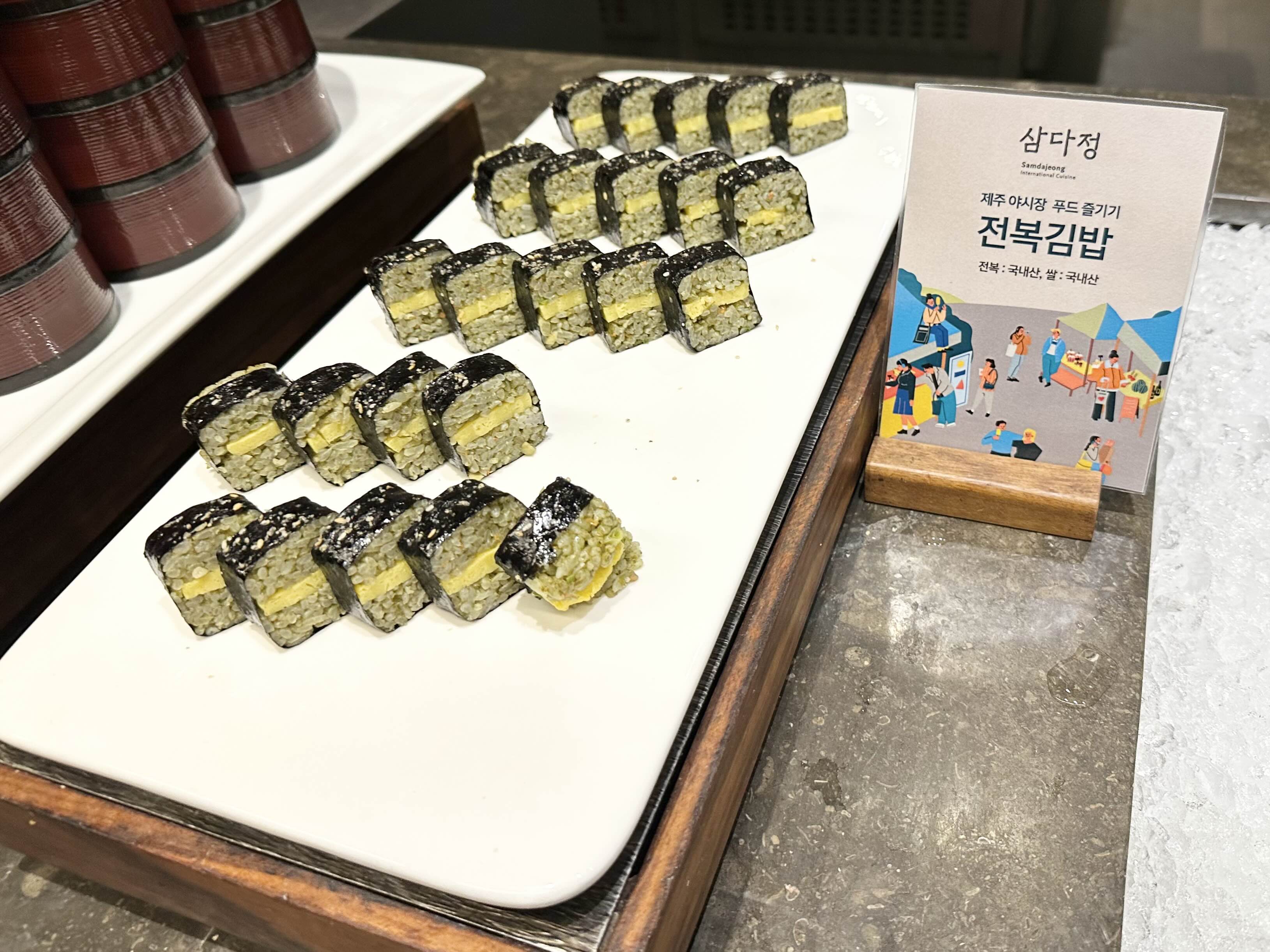 제주 삼다정 뷔페 디너에서 만나 볼 수 있는 전복김밥입니다