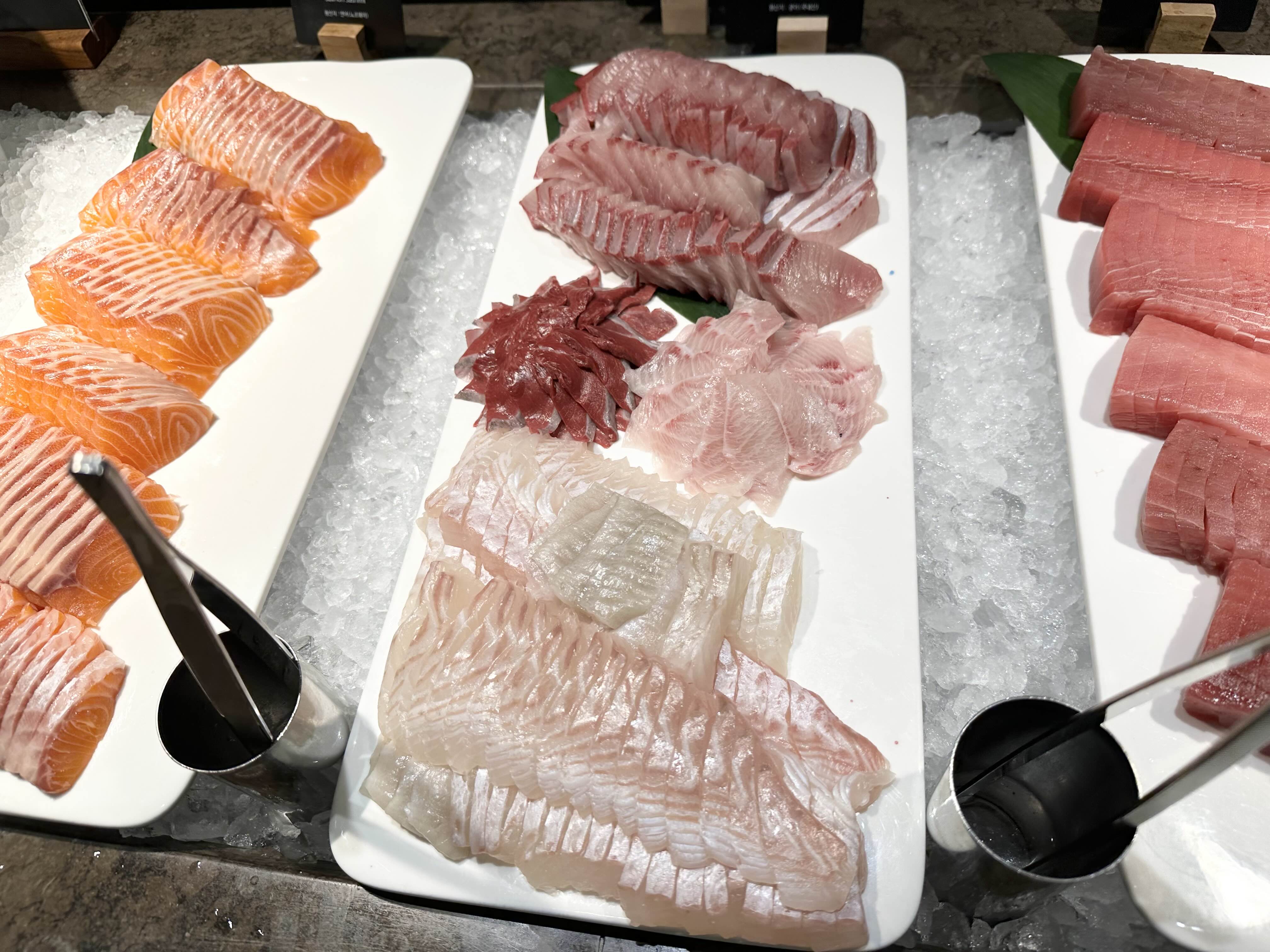 참치, 대방어, 광어, 연어가 줄지어 있는 모습을 보니 이성을 잃을 뻔 했습니다