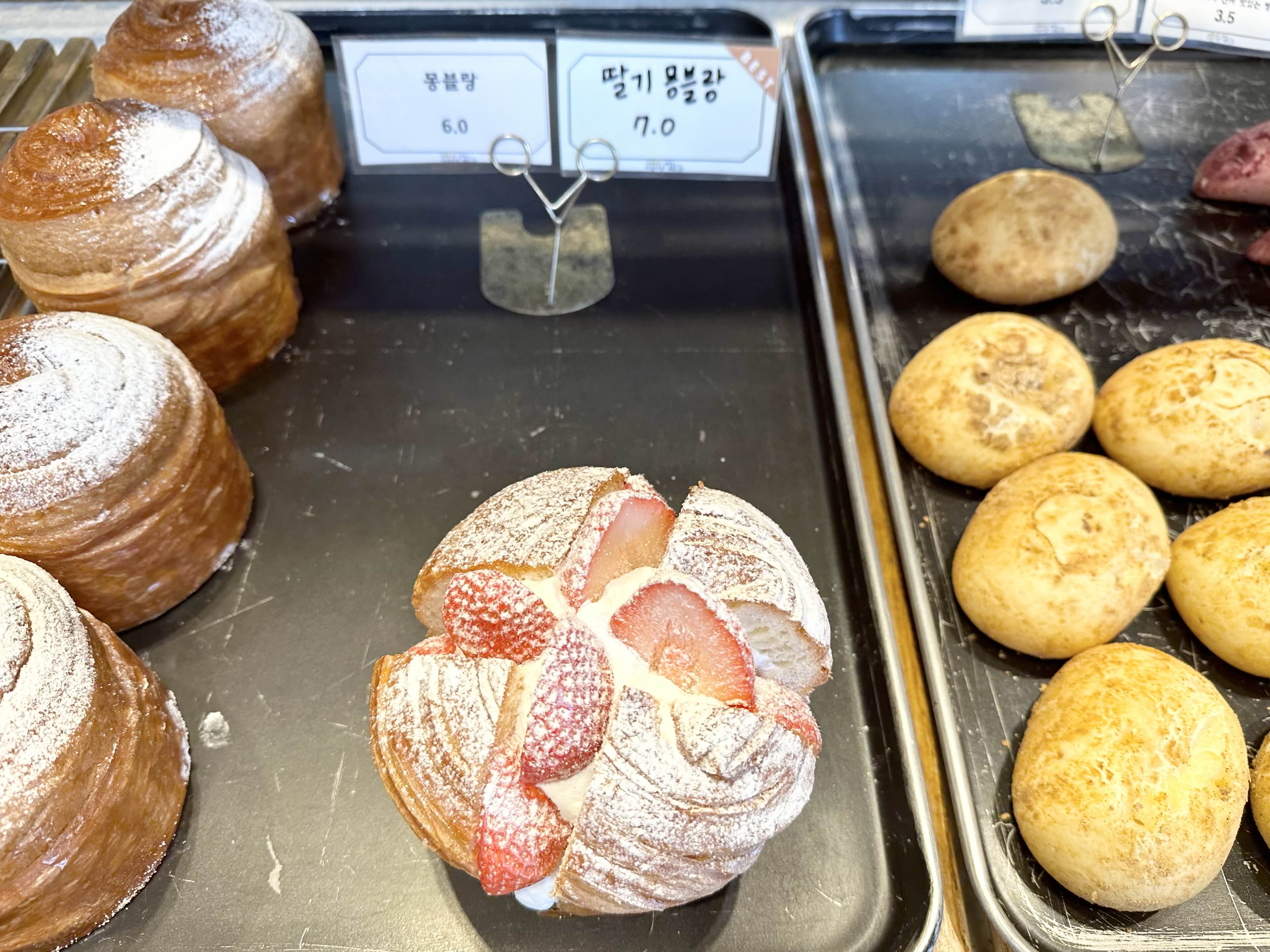 이름만 듣고 동네 빵집 정도로만 생각했었는데 트렌디한 빵들도 많고 넓은 느낌이 들었습니다