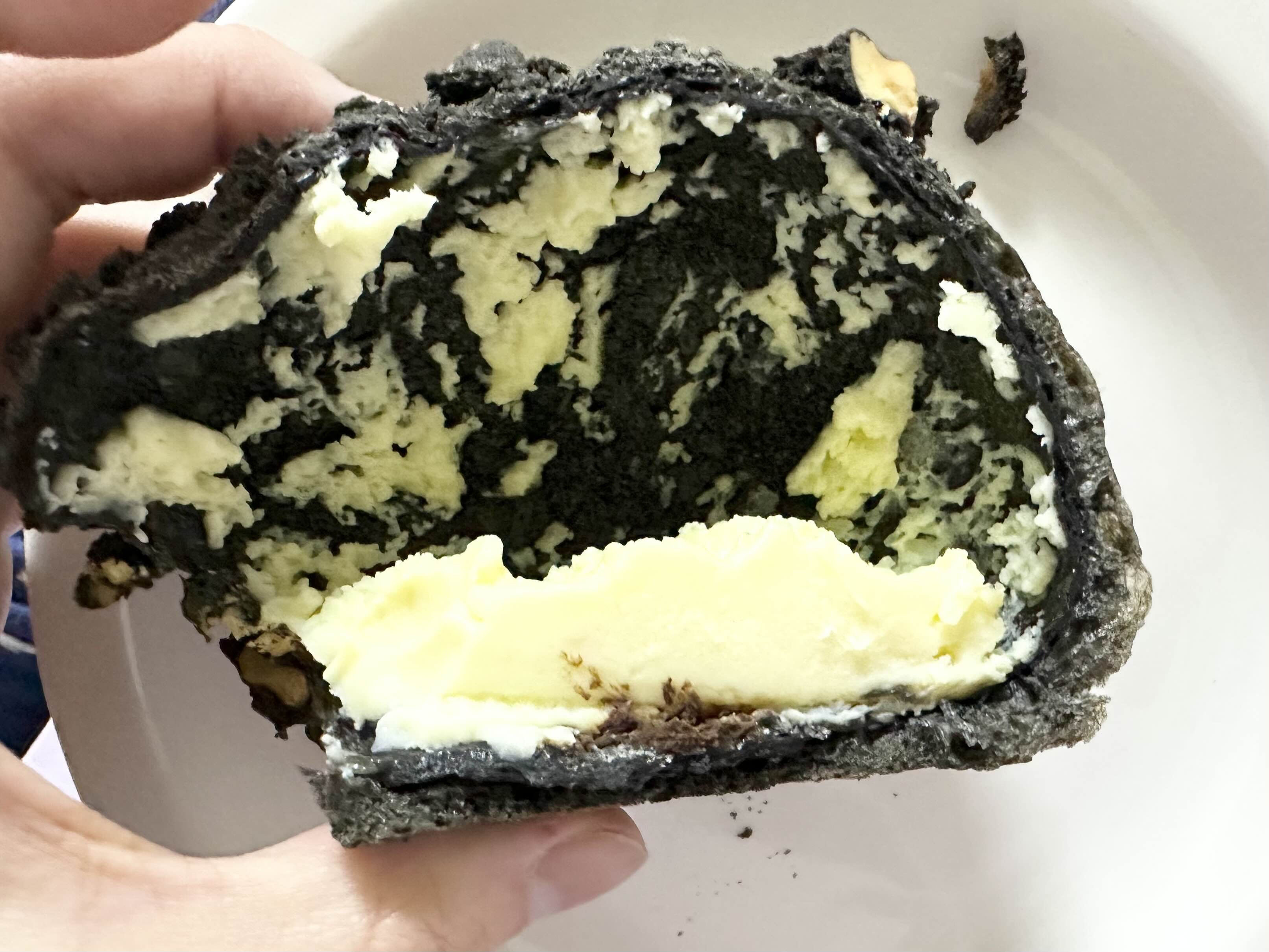 제주 어머니빵집의 현무암빵을 반으로 가르니 공갈빵인가? 싶어서 당황했었는데요