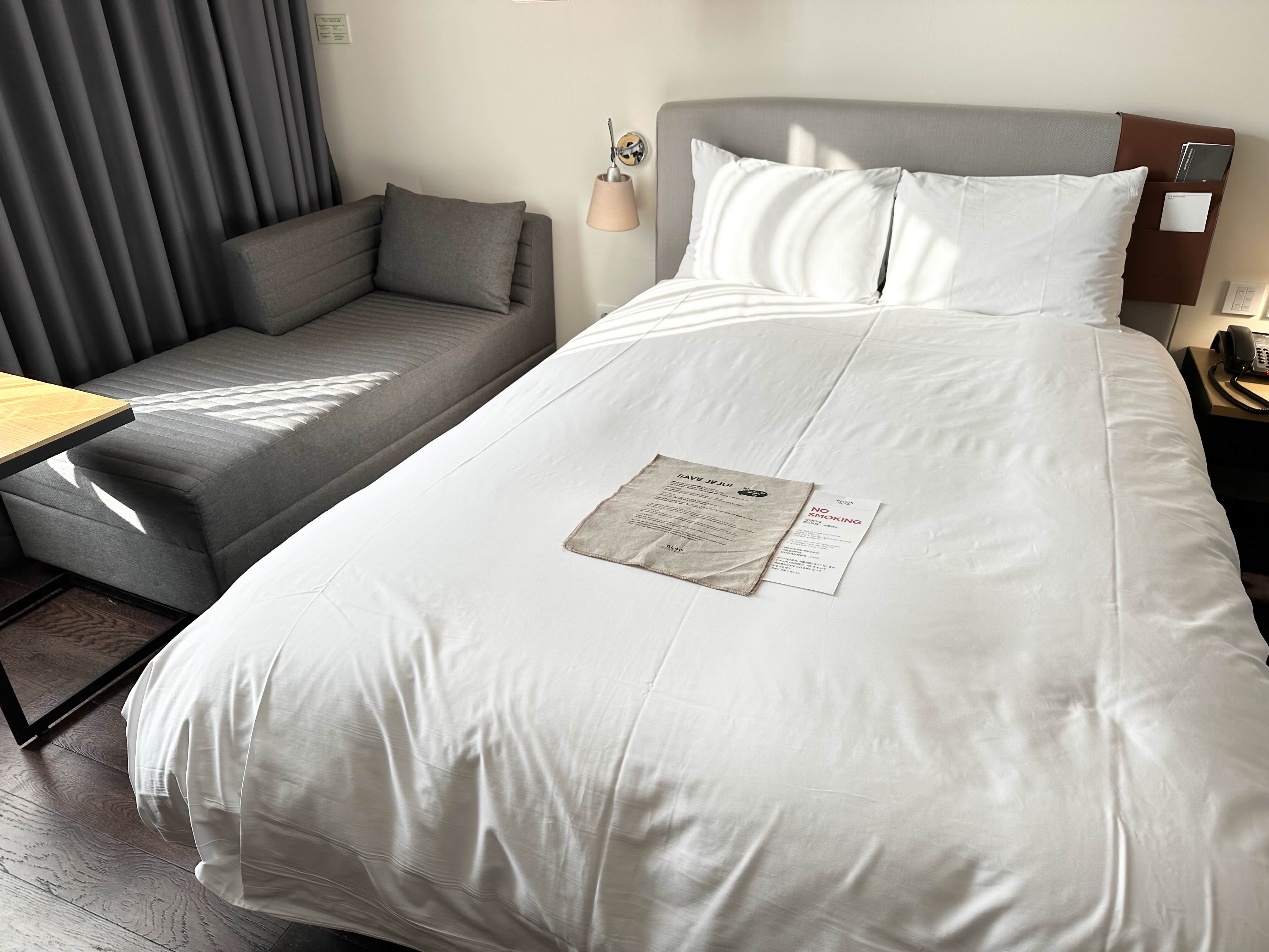 보통 테이블과 의자가 있는데 메종글래드 제주 호텔에는 간이침대처럼 작은 소파겸 의자가 있었습니다