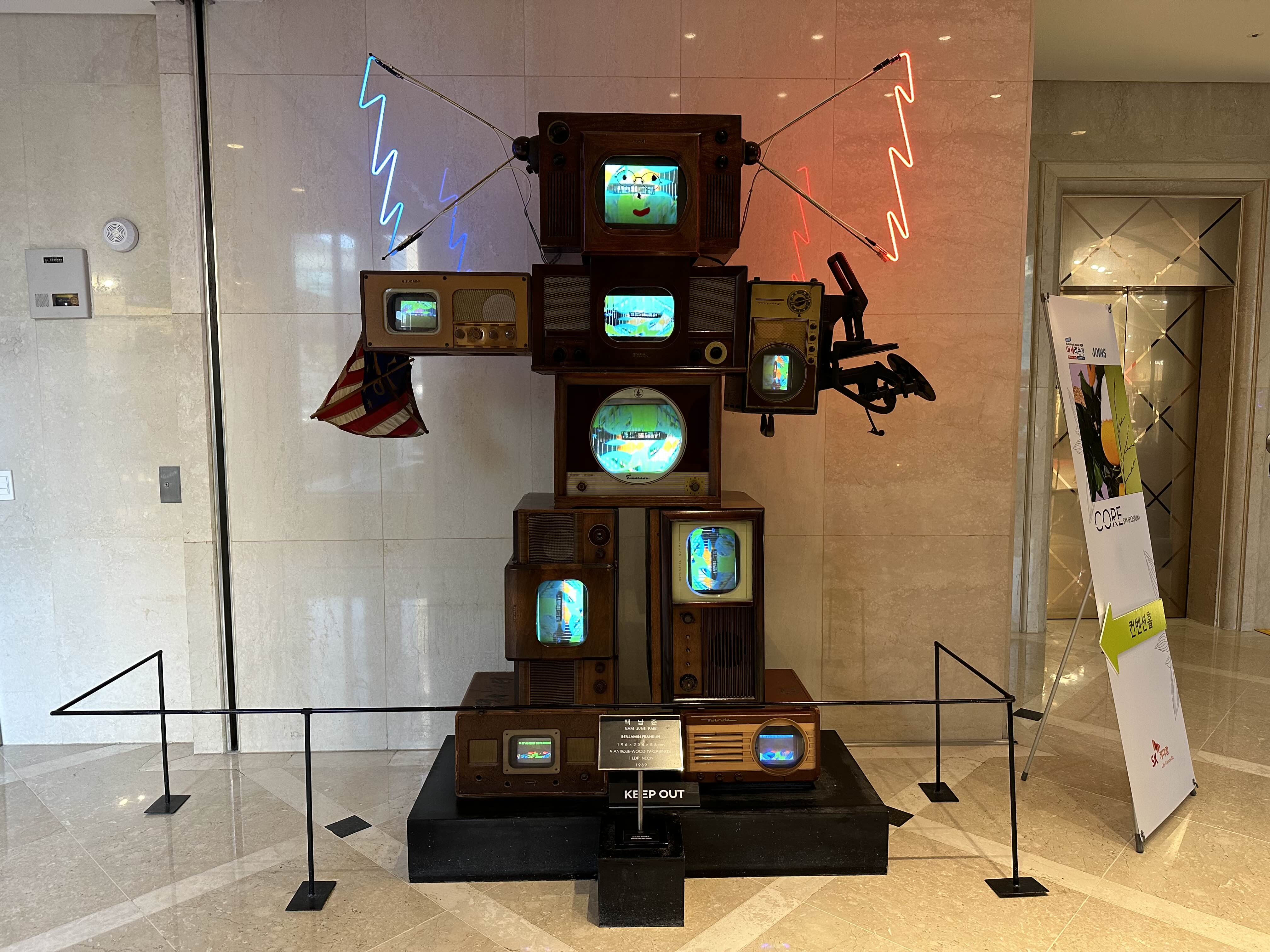 1층 로비에 백남준의 비디오아트가 전시되어 있었습니다