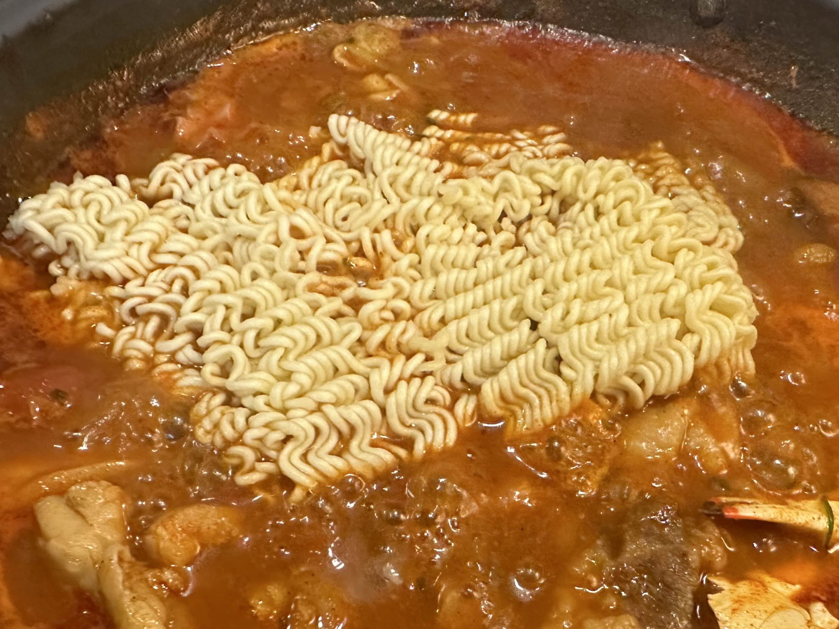 꽃게, 비엔나소시지, 라면 이렇게 세가지 사리를 추가했는데요