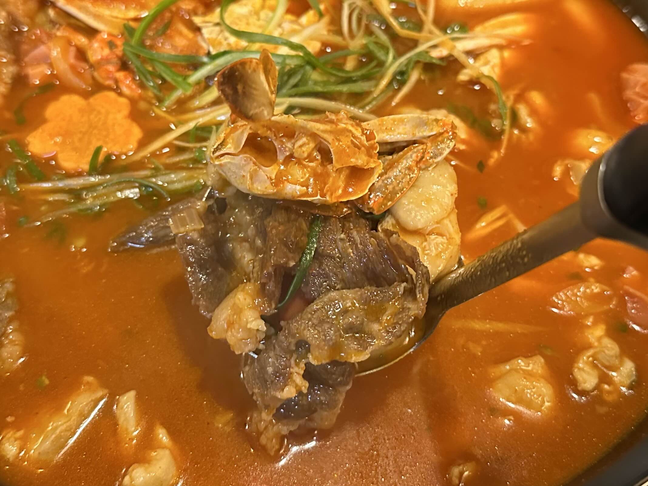 차돌박이와 꽃게 두가지가 모두 들어가니 국물이 정말 맛있었습니다