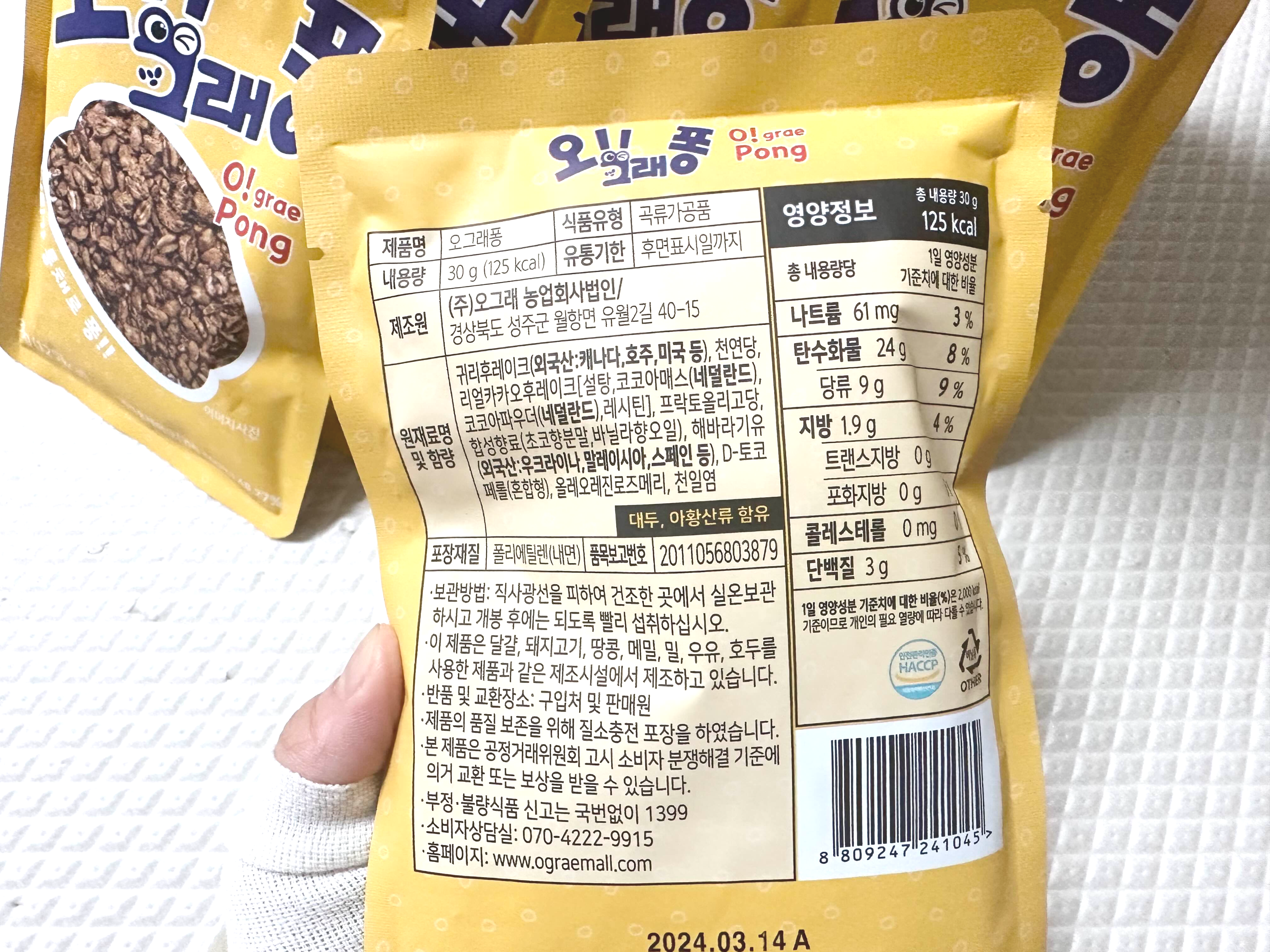 귀리 시리얼 오그래퐁 칼로리와 영양정보입니다
