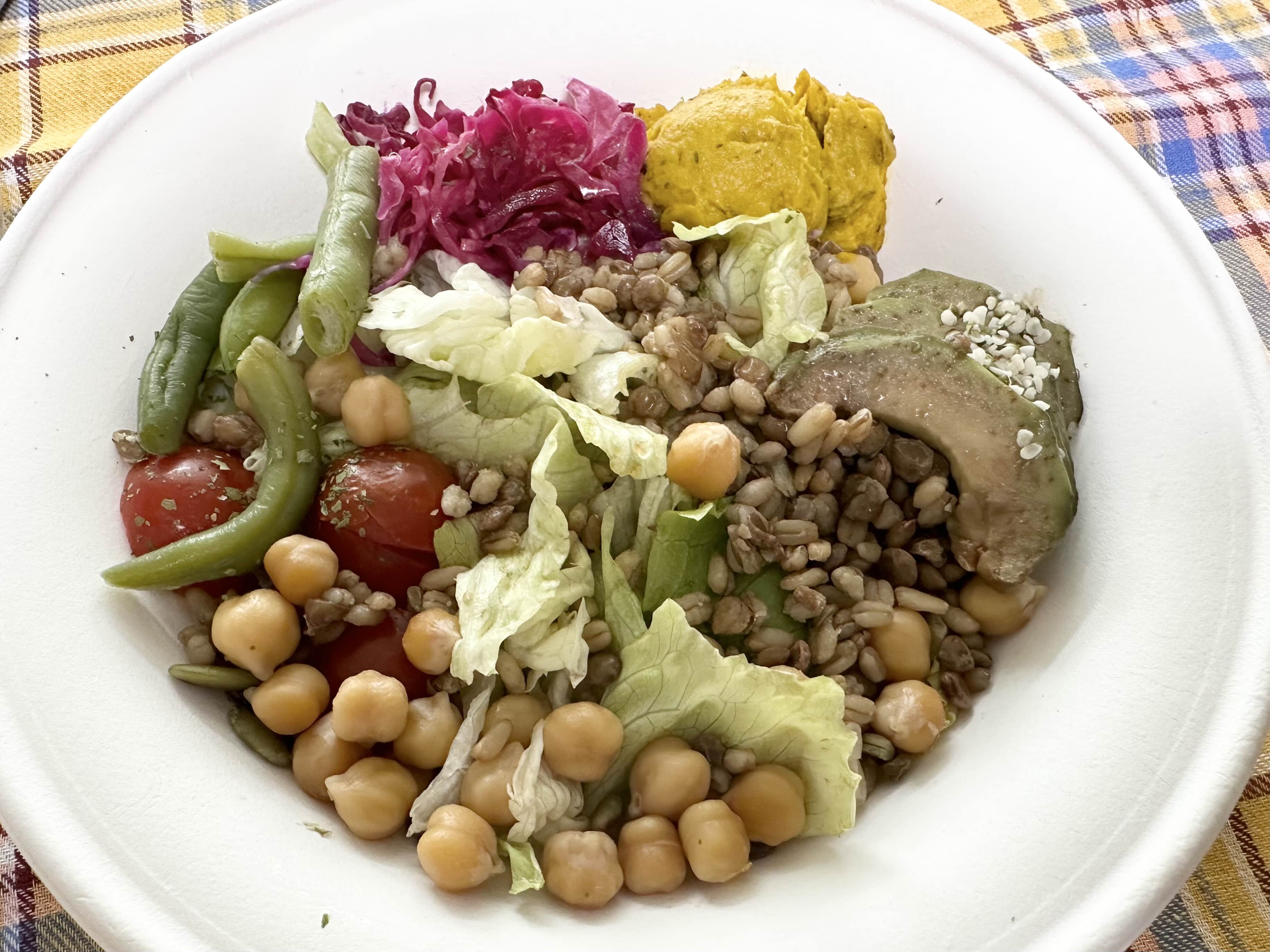 한번에 다 먹기 아까워서 연어파워볼은 집에 있던 샐러드와 반씩 나눠 먹었습니다