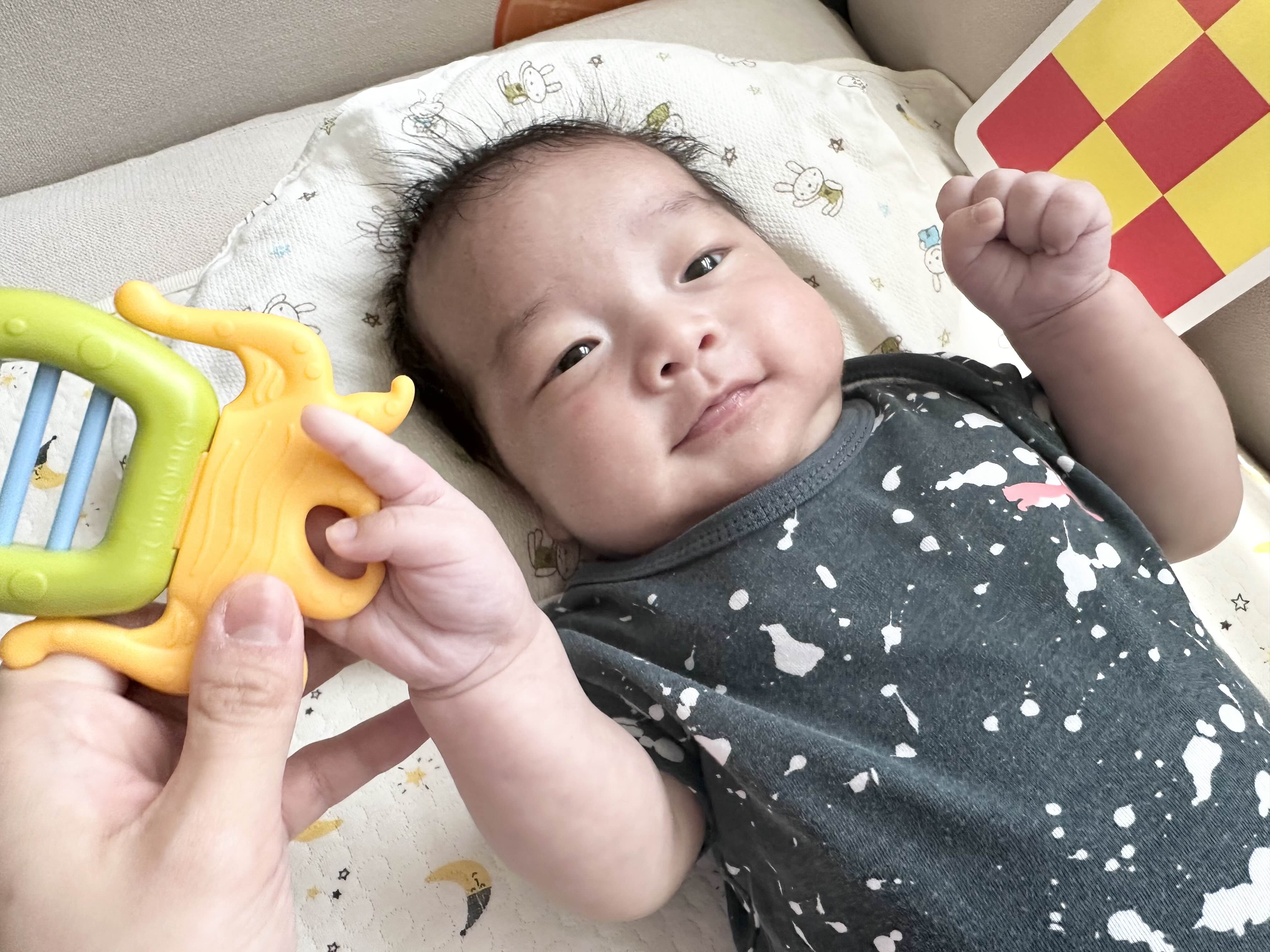 보통 3개월부터 손에 쥐고 흔들고 치발기로도 유용하게 쓰는 것 같더라구요