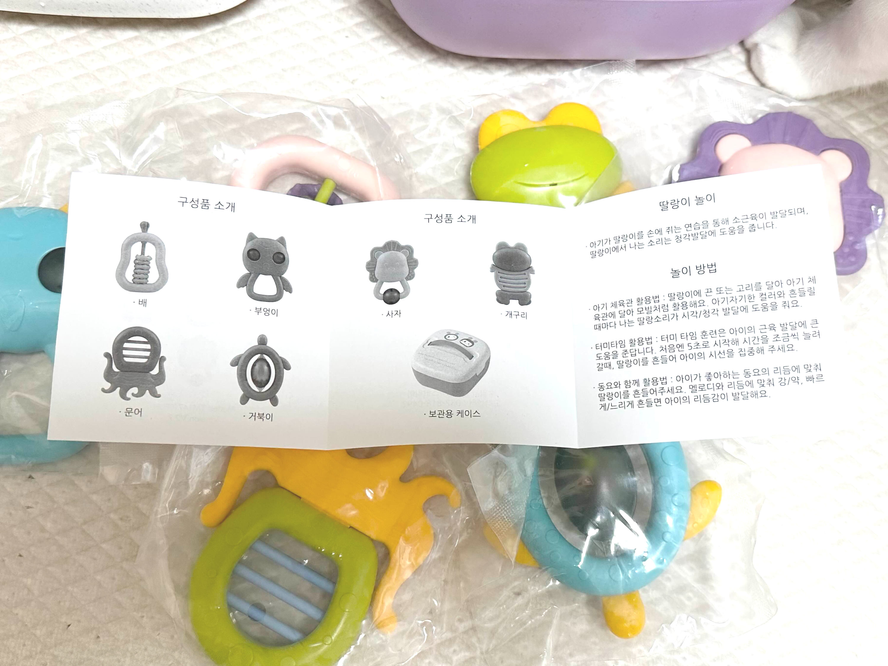 투마마 제품의 열탕소독되는 아기 딸랑이 세트와 사용시기 알려드립니다